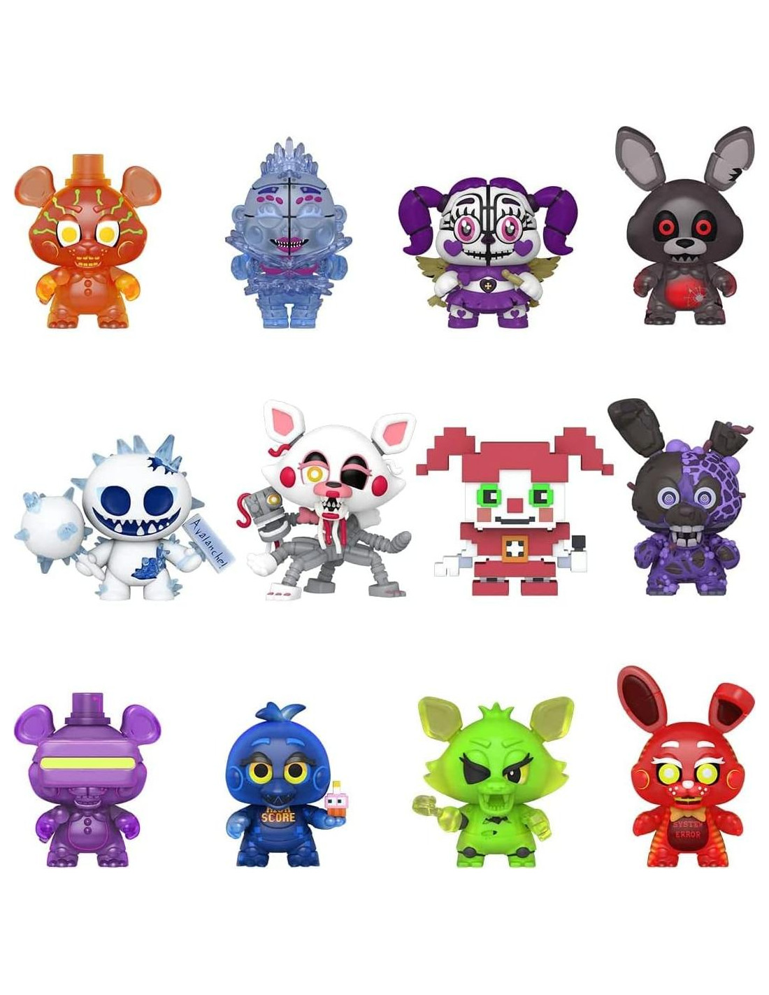 Five Nights at Freddy's: Entrega Especial ha desatado el terror en tu colección. ¿Qué figura abrirás para tu colección? Hay Toy Freddy, High Score Chica, System Error Bonnie, Radioactive Foxy, Toxic Springtrap, 8-Bit Baby, Mangle, Frostbite Gloon, Heartsick Baby, Black Heart Bonnie, Arctic Ballora y Toy Freddy (Naranja). Las figuras de vinilo tienen un máximo de 5.08 centímetros de altura, lo que varía según la figura. Caja de 12 figuras.