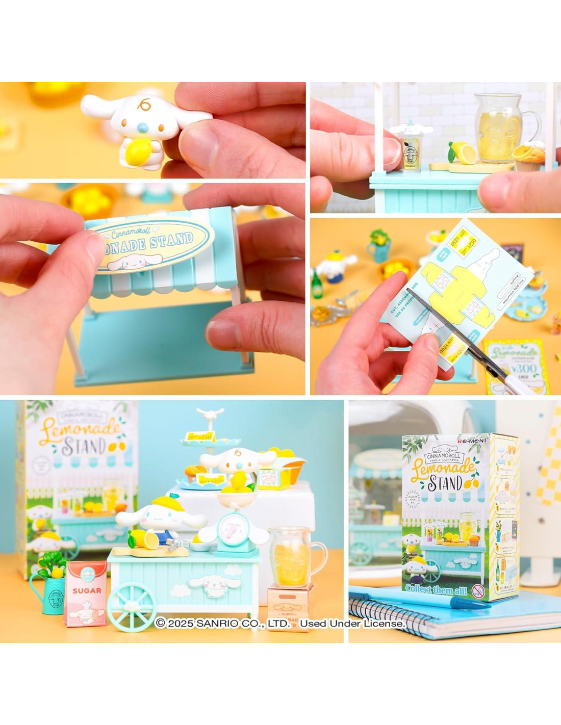 - [DIVERTIDO DE ENSAMBLAR Y EXHIBIR!] Cada set contiene una variedad de figuras miniatura que incluyen a Cinnamoroll, Milk, un carrito de limonada, varios ingredientes y utensilios, una bandeja de pasteles en varios niveles para exhibir adorables mini muffins, galletas y pasteles temáticos de Cinnamoroll, además de accesorios de papel recortados para decorar tu diorama. ¡Colecciona los 8 sets para crear toda la escena!