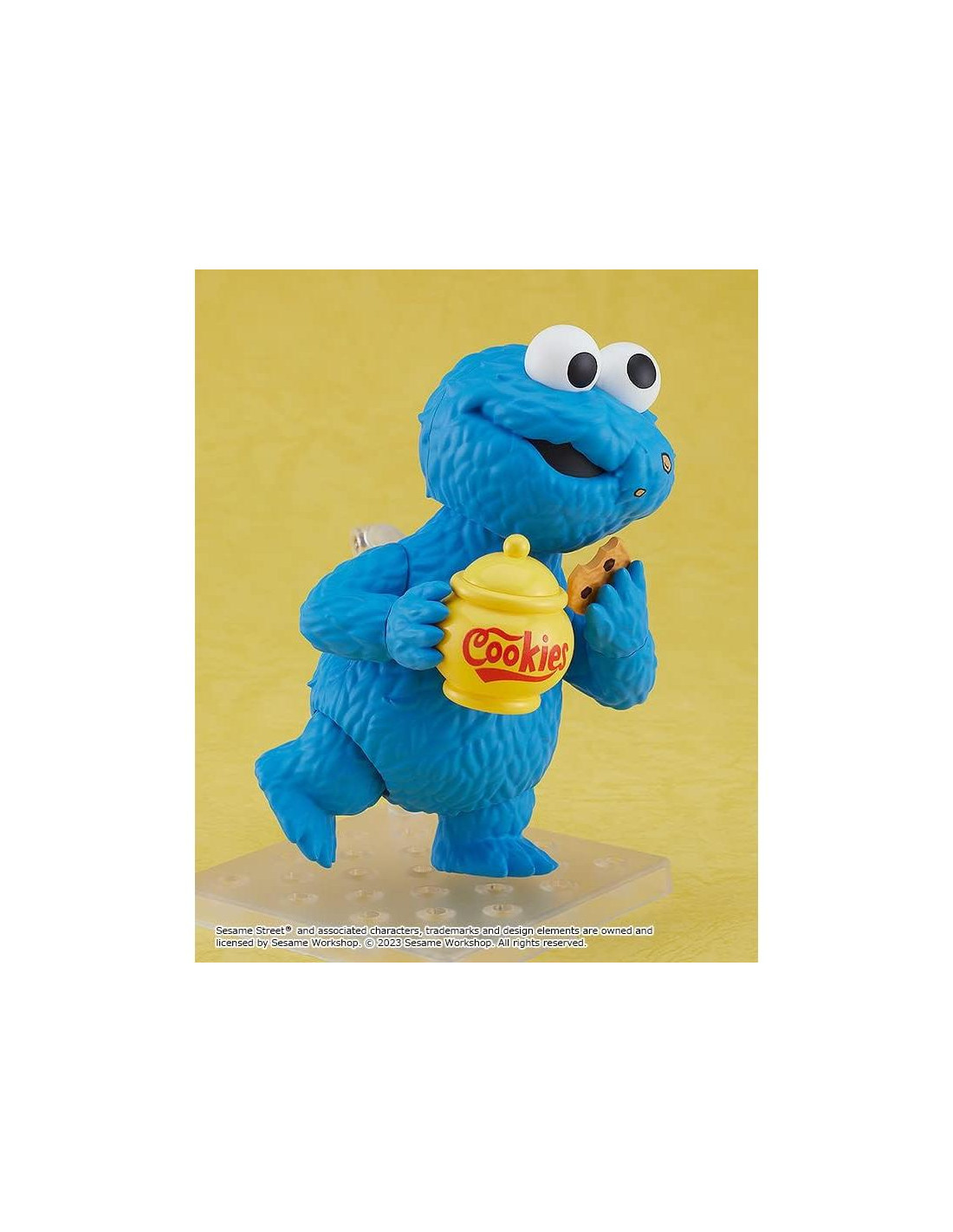 De Good Smile Company. De Calle Sésamo llega un Nendoroid del Cookie Monster amante de las galletas! Incluye una cara sonriente y una cara comiendo galleta, y los accesorios incluyen galleta, galleta a medio comer, tarro de galletas, hoja de fondo de galletas y otras piezas opcionales para diferentes poses.