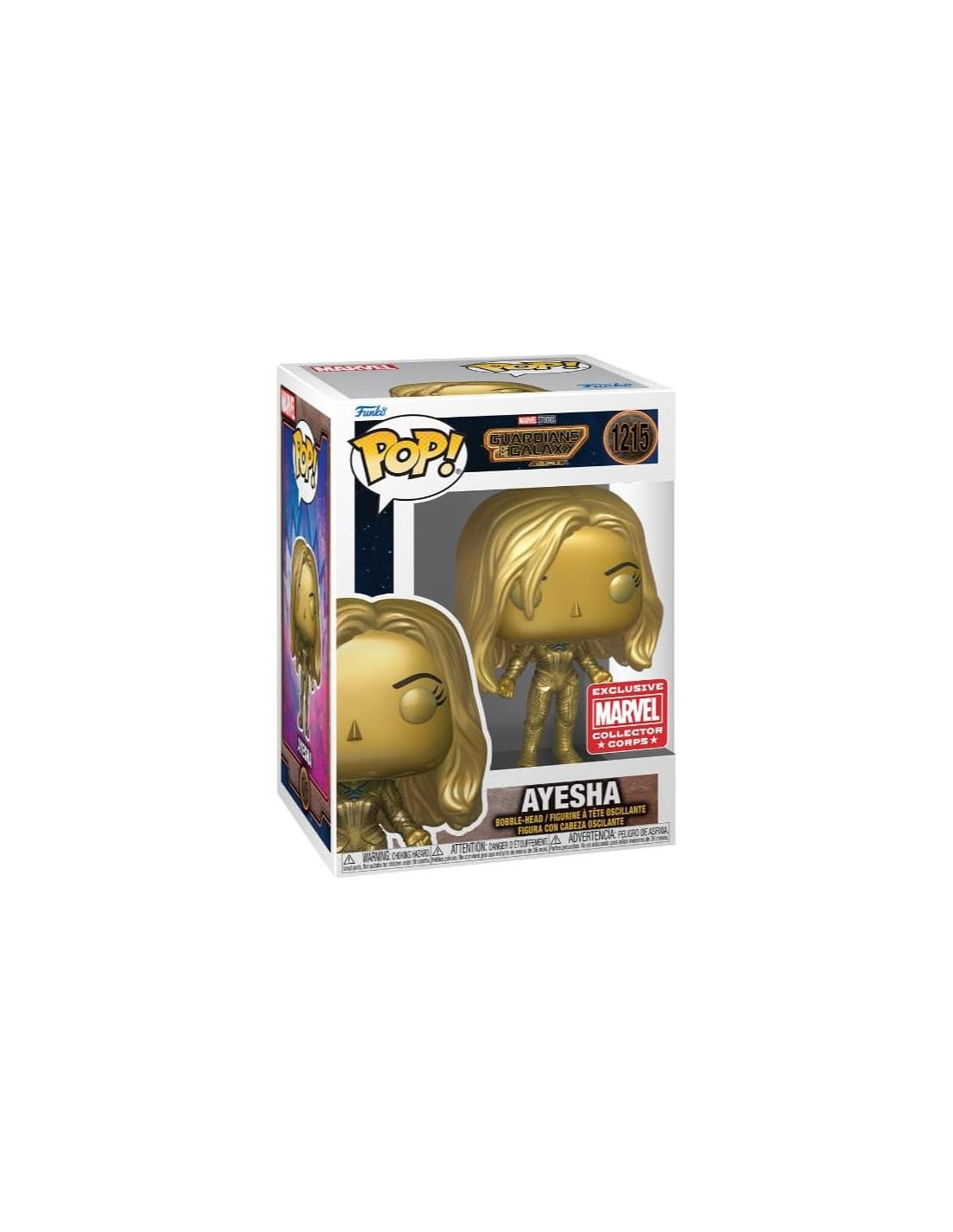 Enemiga jurada de los Guardianes de la Galaxia. Ayesha trabaja junto al Alto Evolucionador para capturar a Rocket de los Guardianes. Colecciona este Funko POP! Exclusivo para añadir a tu colección.