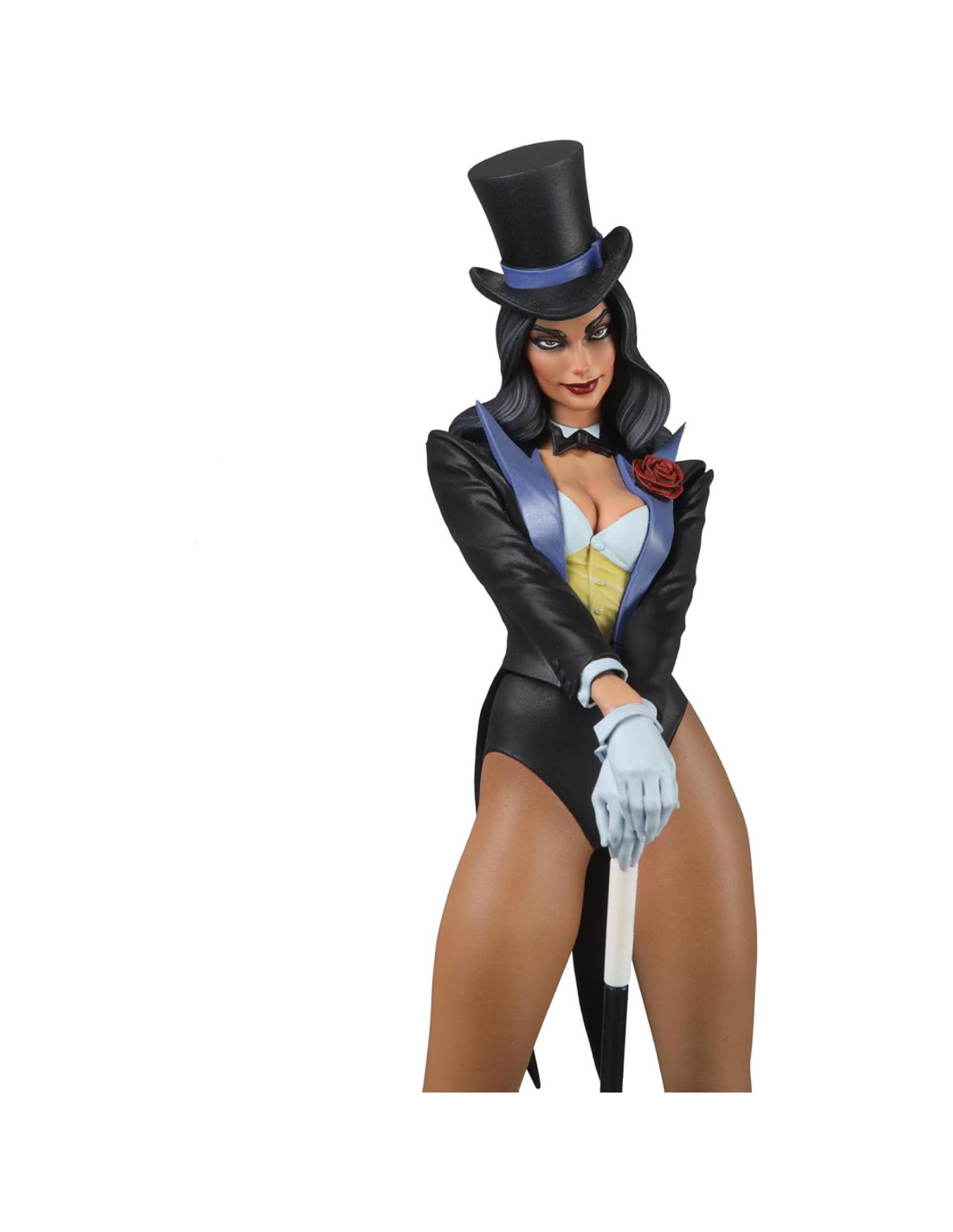 Una de las artistas de portada más icónicas y destacadas continúa su trayectoria en la línea de estatuas DC Cover Girls con una hermosa estatua que presenta a la Maestra de la Magia. Zatanna, diseñada por J. Scott Campbell a escala 1:8, captura completamente a la heroína en su traje clásico. En una pose impactante y segura, Zatanna muestra elementos clásicos de su vestuario, como su sombrero de copa, chaqueta de esmoquin y su bastón característico. La figura viene presentada sobre una base con el logo del personaje Zatanna.