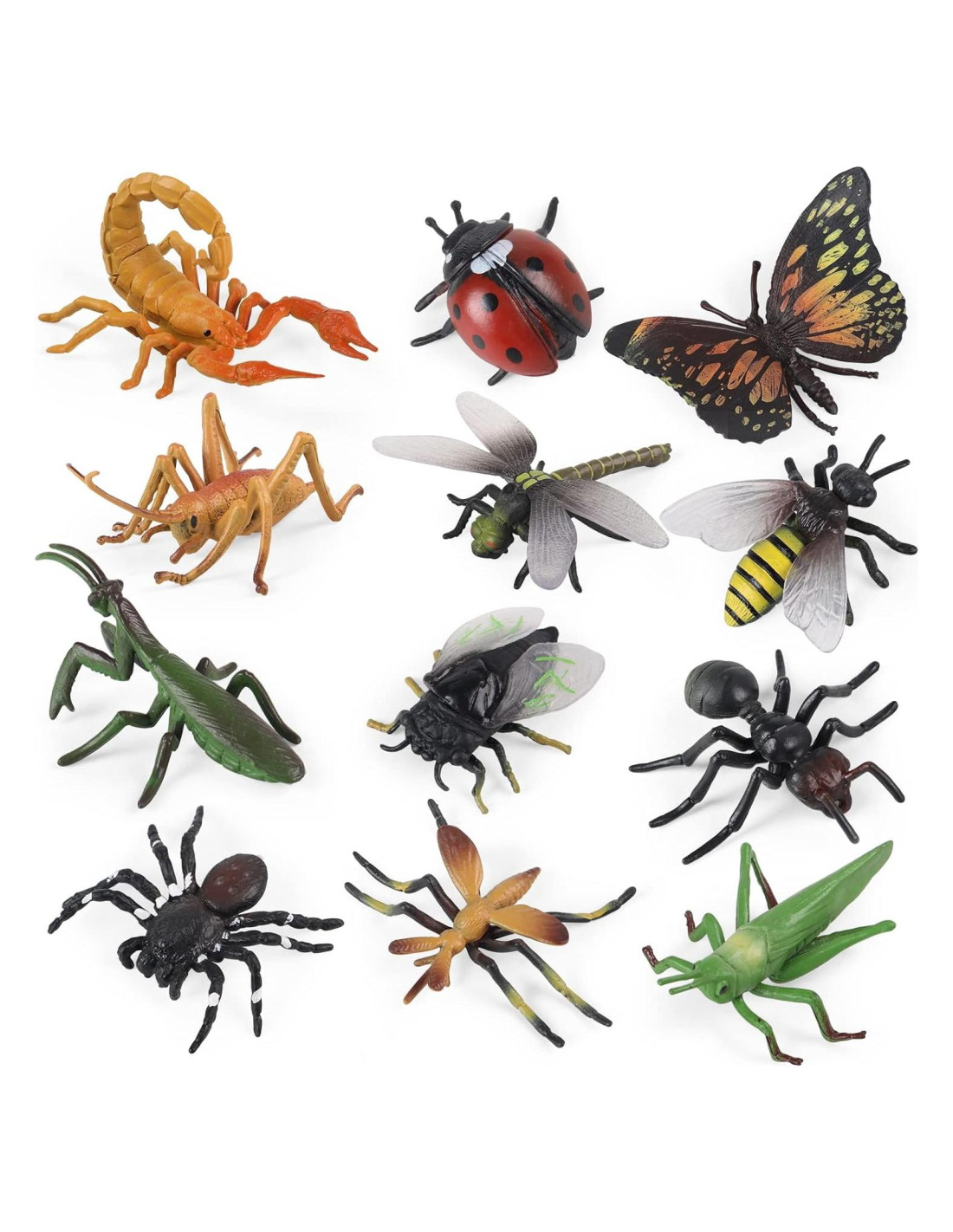 - Figuras de Animales Insectos Realistas - Figuritas de insectos de plástico con colores vibrantes, poses activas. Cada figura está finamente pintada a mano y esculpida por expertos, lo que garantiza autenticidad. Ideal para educación sobre especies de insectos y historia natural. El set de juguetes insectos incluye Mariquita, Abeja, Mariposa, Hormiga, Grillo, Mantis, Escorpión, Araña, Libélula, Langostas, Mosquito, Cigarra.