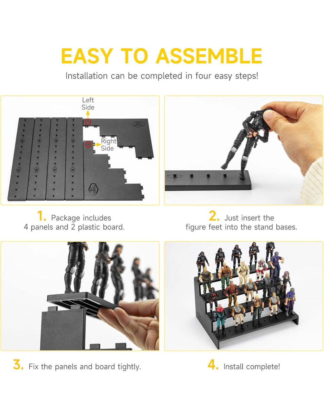 - DISEÑO DE CUATRO NIVELES Y PEGS: Se pueden exhibir juntos y organizarse por separado 4 alturas diferentes. Cada nivel está diseñado con pegs flexibles (tamaño del peg aproximadamente 3.6 mm), que pueden sostener de 16 a 20 figuras cuando están completamente. Diseño de múltiples capas y pegs, excelente para mantener figuras de acción inestables de pie al exhibir, resalta las figuras en el armario.