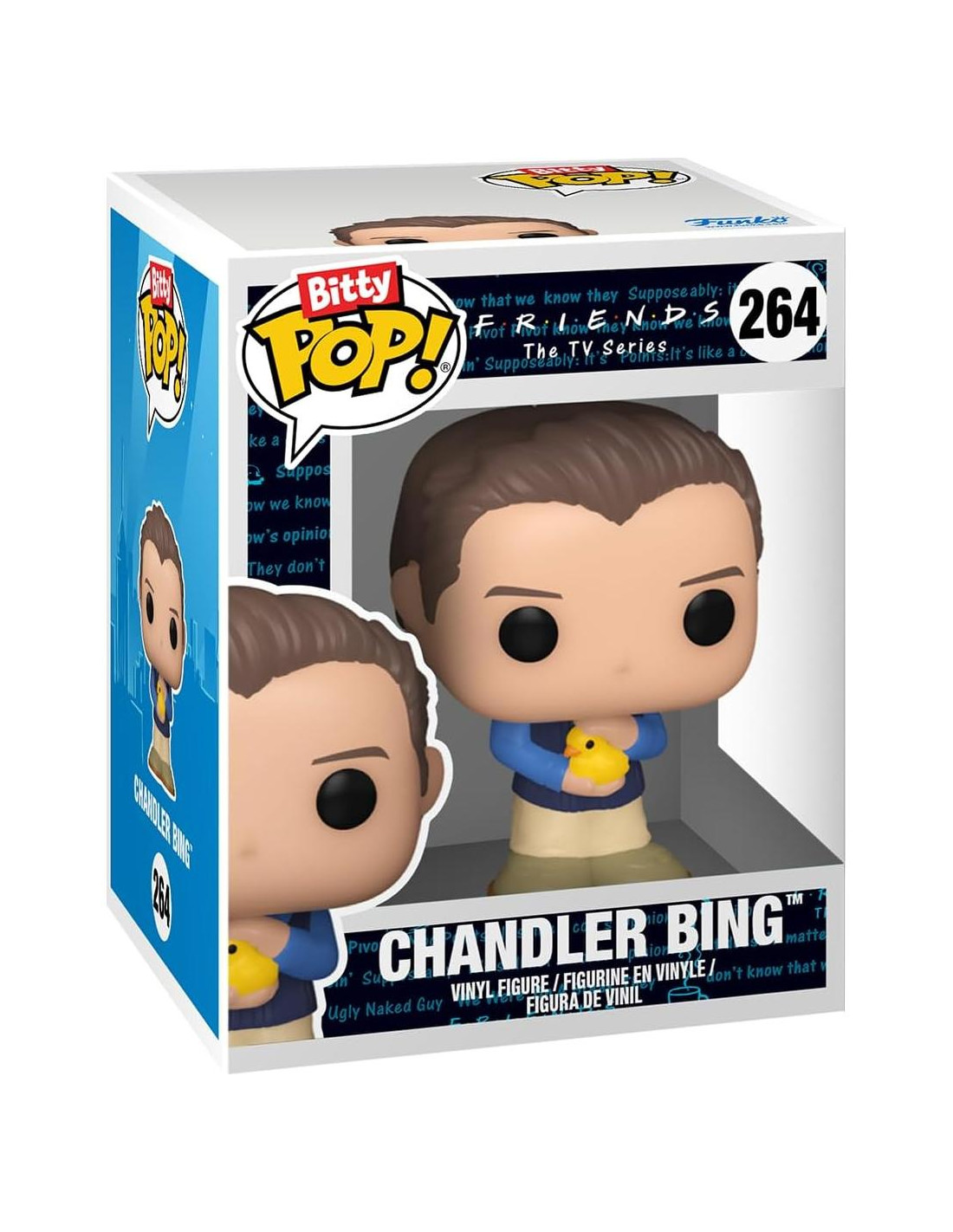 ¡Tus Pops! favoritos de Friends han sido reducidos a Bitty Pops! ¡Expande tu colección con este surtido de figuras Bitty Pop! que presentan a tus personajes de sitcom más queridos como figuras miniaturizadas! Este paquete de 4 incluye Bitty Pop! Phoebe Buffay, Bitty Pop! Monica Geller, Bitty Pop! Chandler Bing y una figura Bitty Pop! misteriosa. Las posibles figuras Bitty Pop! misteriosas son Hyper Rare (1/6) Joey Tribbiani (Cowboy), Hyper Rare (1/6) Phoebe Buffay (Video Musical), Rare (1/3) Phoebe Buffay (Disfraz de Halloween) y Rare (1/3) Joey Tribbiani (con la ropa de Chandler). Los Bitty Pops! vienen empaquetados en cajas de acrílico duro con tapas inferiores desmontables. Las tapas inferiores desmontables también sirven como bases de acrílico, a las que se adhieren las figuras Bitty Pop! Organiza y ordena tus Bitty Pops! con la caja de exhibición incluida. Las cajas de exhibición de acrílico son apilables y sostienen cuatro figuras Bitty Pop! cada una. Las figuras de vinilo tienen aproximadamente 0.9 pulgadas de altura. Cuatro figuras por compra de paquete único. Advertencia: Peligro de asfixia. Los coleccionables son pequeños. No apto para niños menores de 3 años. La selección de artículos es aleatoria, ya que cada pieza está en un empaque ciego. No podemos aceptar solicitudes para artículos específicos. Puede que recibas figuras duplicadas.
