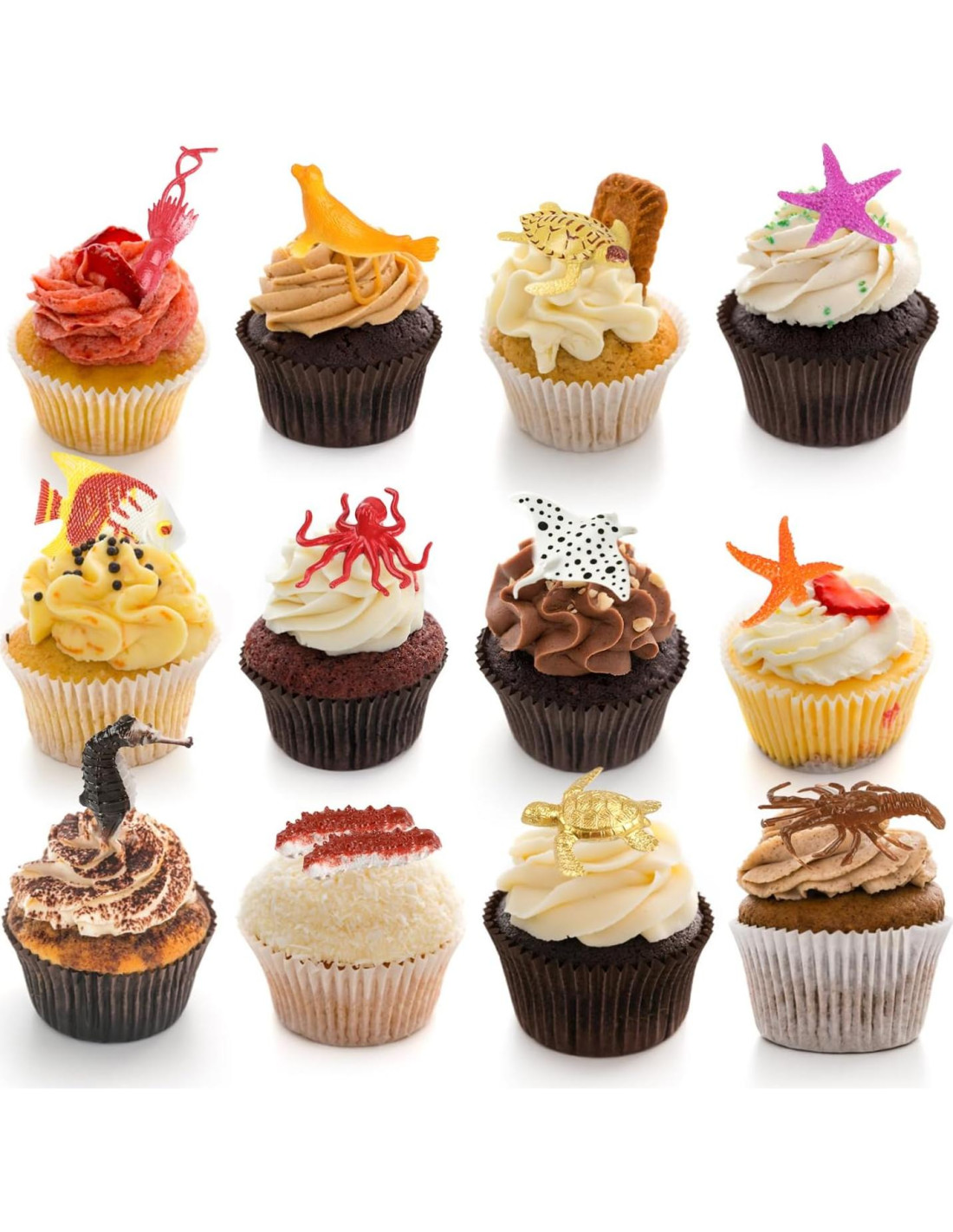 - Juguetes de animales marinos como decoraciones para pasteles y cupcakes, favores de fiesta de verano bajo el mar
