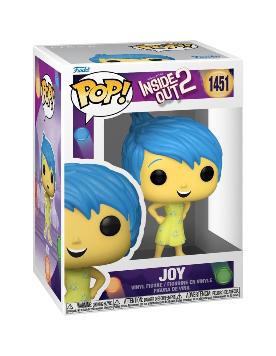 De Inside Out 2 - Alegría, como una figura de vinilo Pop! estilizada que mide 3.75 pulgadas (9,53 cm) y viene en una caja de exhibición con ventana. Colecciona toda la línea de figuras de vinilo Funko Pop! de Monsters Inc.: Sulley, Mike Wazowski, Boo, Roz, Celia, Yeti, George Sanderson y Randall. Colecciona toda la línea de figuras de vinilo Funko Pop! de Disney Pixar Toy Story: Sheriff Woody, Buzz Lightyear, Jessie, Alien, Forky, Ducky, Bunny, Bo Peep, Oficial McDimples, Combat Carl Jr y Duke Caboom. Colecciona toda la línea de figuras de vinilo Funko Pop! de Disney Pixar: Toy Story - Woody, Buzz Lightyear, Hamm, Rex, Jessie, Bo Peep, Bullseye, Mrs. Nesbit, Slinky Dog y Wheezy! Buen Dinosaurio - Arlo y Spot! Buscando a Nemo - Nemo, Dory, Hank, Bruce y Crush! Disney Up! - Carl, Rissel y Dug! Inside Out - Ira, Tristeza, Alegría, Miedo, Desagrado, Ansiedad, Vergüenza, Envidia en la Orbe de Memoria, Aburrimiento y Bing Bong! Wall-E y Eve. Monsters Inc. - Sulley, Mike, Boo, Roz, George Sanderson, Randall, Big Hero 6 Baymax! Una Vida de Insectos - Flik, Princesa Atta y Heimlich! Colecciona toda la línea de figuras de vinilo Funko Pop! de Disney Pixar Incredibles e Incredibles 2: Mr. Incredible, Mrs. Incredible, Elastigirl, Edna, Violet, Dash, Jack Jack, Fro Zone, Undermine, Screenslaver y Syndrome! (Cada uno vendido por separado) Incluye una funda protectora Pop adecuada para cualquier inversión de coleccionista.
