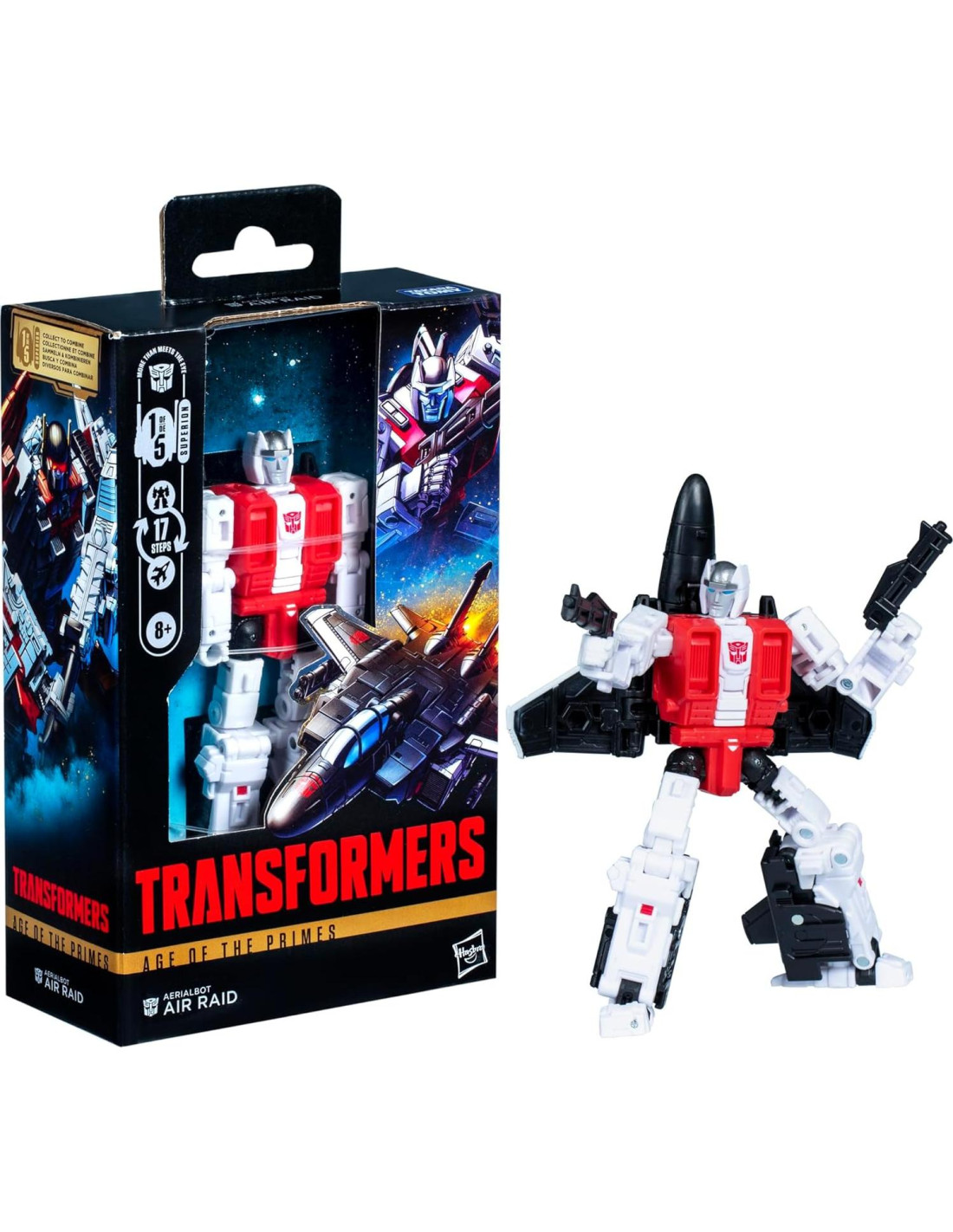 Une a tus personajes favoritos del mundo de los robots Transformers en tu colección con la figura de acción Transformers Edad de los Primos Clase Deluxe! Esta figura de acción Aerialbot Air Raid de 5.5 pulgadas (14 cm) se convierte entre modos de robot y jet en 17 pasos. Combina la figura Aerialbot Air Raid con otras figuras de acción Aerialbot de Transformers para crear la figura de Superion! (Cada una se vende por separado, sujeta a disponibilidad.) La figura Aerialbot Air Raid está inspirada en el personaje del universo Transformers y cuenta con cabeza, brazos y piernas articuladas para increíbles poses de acción. Transformers: Edad de los Primos abre el mundo de los Primos, los primeros bots en la mitología de Transformers, un panteón de Trece seres, cada uno con una habilidad y personalidad únicas. Cada batalla, cada bot y cada poder en el universo Transformers se puede rastrear hasta uno de los Trece. Colecciona y combina diferentes figuras de Transformers para crear tu alineación ideal de la Edad de los Primos. TRANSFORMERS y HASBRO y todas las marcas y logotipos relacionados son marcas registradas de Hasbro, Inc.