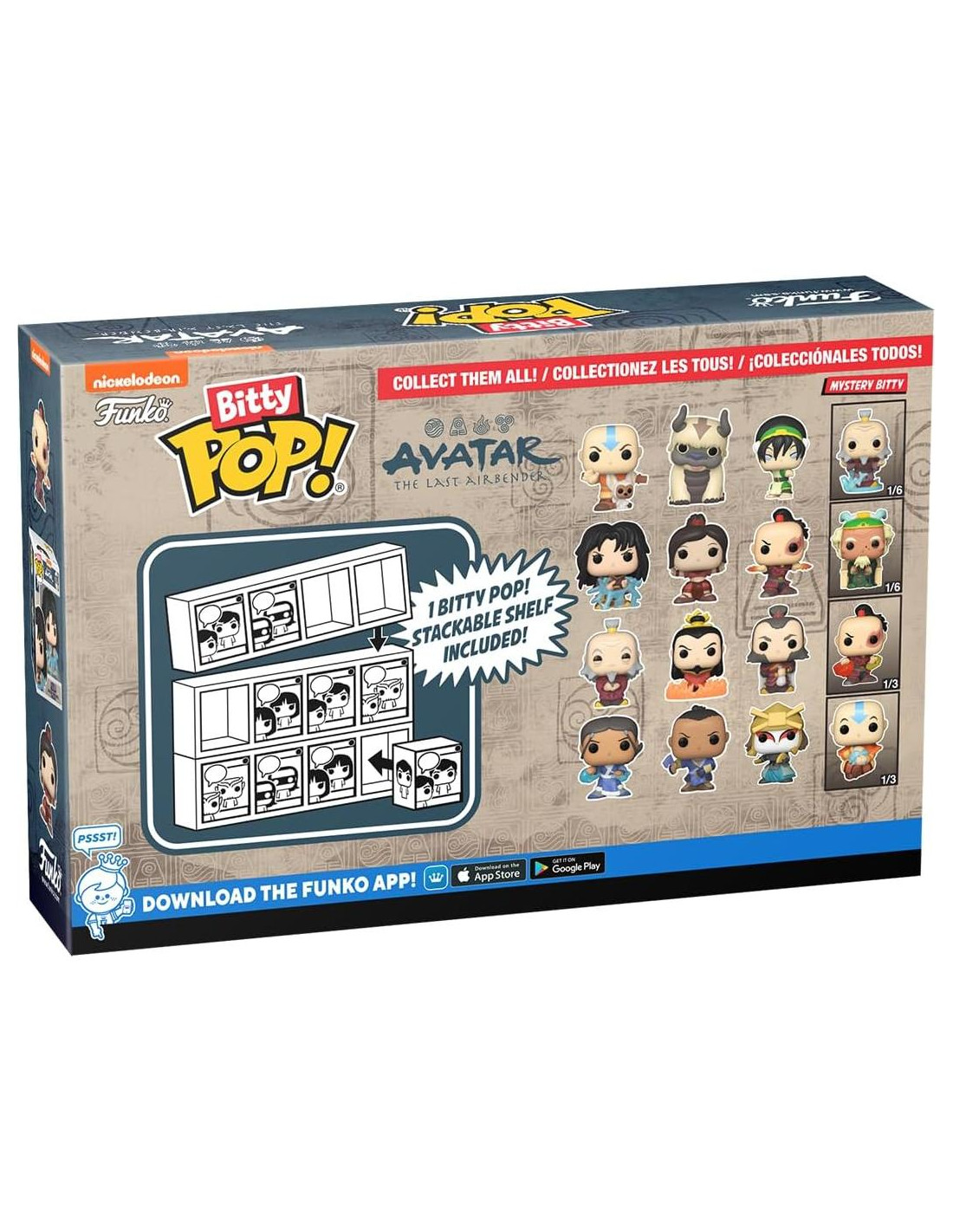 Tus Pops! favoritos de Avatar: La Última Airbender han sido reducidos a Bitty Pops! Expande tu colección con este surtido de figuras Bitty Pop! que presentan a tus dobladores, no dobladores y criaturas más queridos como figuras miniaturizadas! Este paquete de 4 incluye Bitty Pop! Katara, Bitty Pop! Sokka, Bitty Pop! Suki, y una figura Bitty Pop! misteriosa. Las posibles figuras Bitty Pop! misteriosas son Hyper Rare (1/6) Iroh con relámpago, Hyper Rare (1/6) Rey Bumi, Rare (1/3) Zuko, y Rare (1/3) Aang (flotando). Los Bitty Pops! vienen empaquetados en cajas de acrílico duro con tapas inferiores desmontables. Las tapas inferiores desmontables también sirven como bases de acrílico, a las que se adhieren las figuras Bitty Pop!. Ordena y organiza tus Bitty Pops! con la caja de exhibición incluida! Las cajas de exhibición de acrílico son apilables y sostienen cuatro figuras Bitty Pop! cada una. Las figuras de vinilo tienen aproximadamente 0.9 pulgadas de altura. Cuatro figuras por compra de paquete único. Advertencia: Peligro de asfixia. Los coleccionables son pequeños. No apto para niños menores de 3 años. La selección de artículos es aleatoria, ya que cada pieza está en un empaque ciego. No podemos aceptar solicitudes para artículos específicos. Puede que recibas figuras duplicadas.