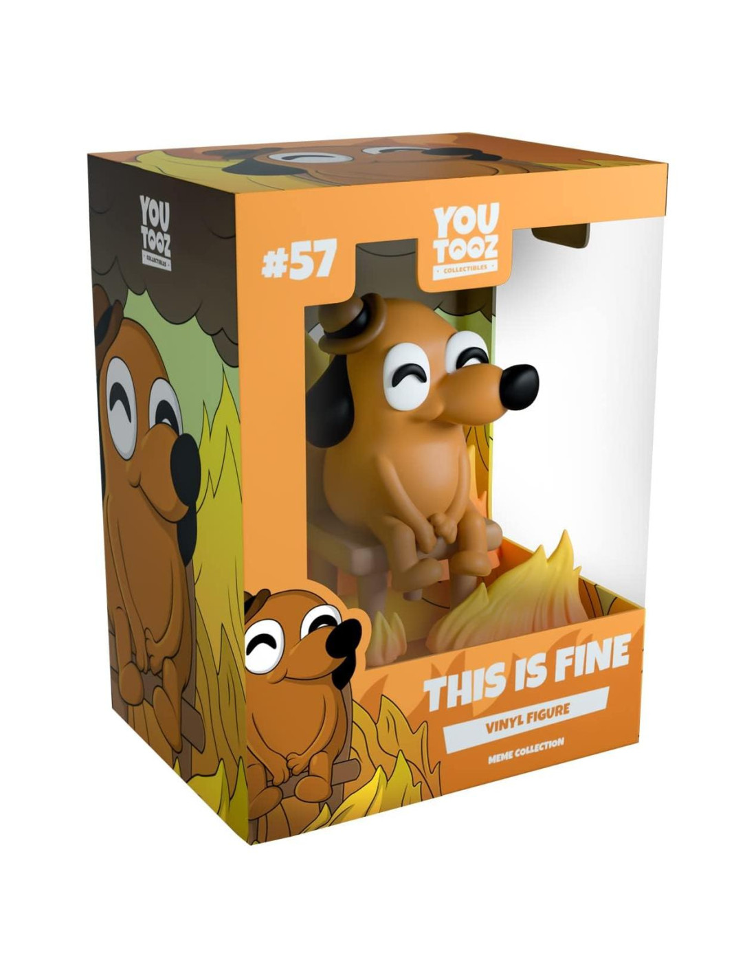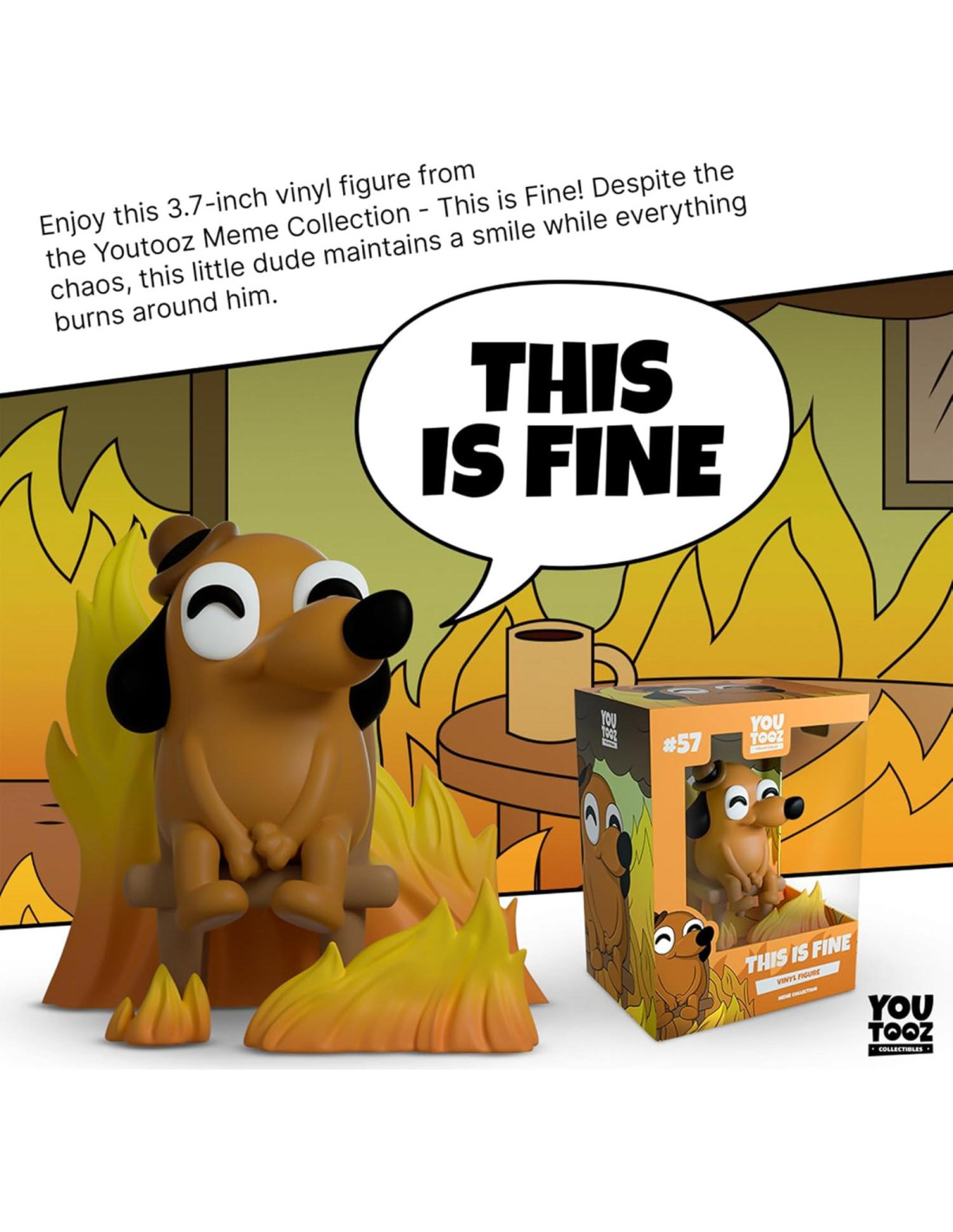 - Colección de Memes Youtooz - Esto está bien: Todo está ardiendo, pero aún hay una sonrisa en la cara de este pequeño. Con 3.7 pulgadas (9.4 cm), este perro en llamas meme realmente se está manteniendo mientras todo a su alrededor está ardiendo. El perro está sentado en una silla de madera con llamas esculpidas delante y detrás.