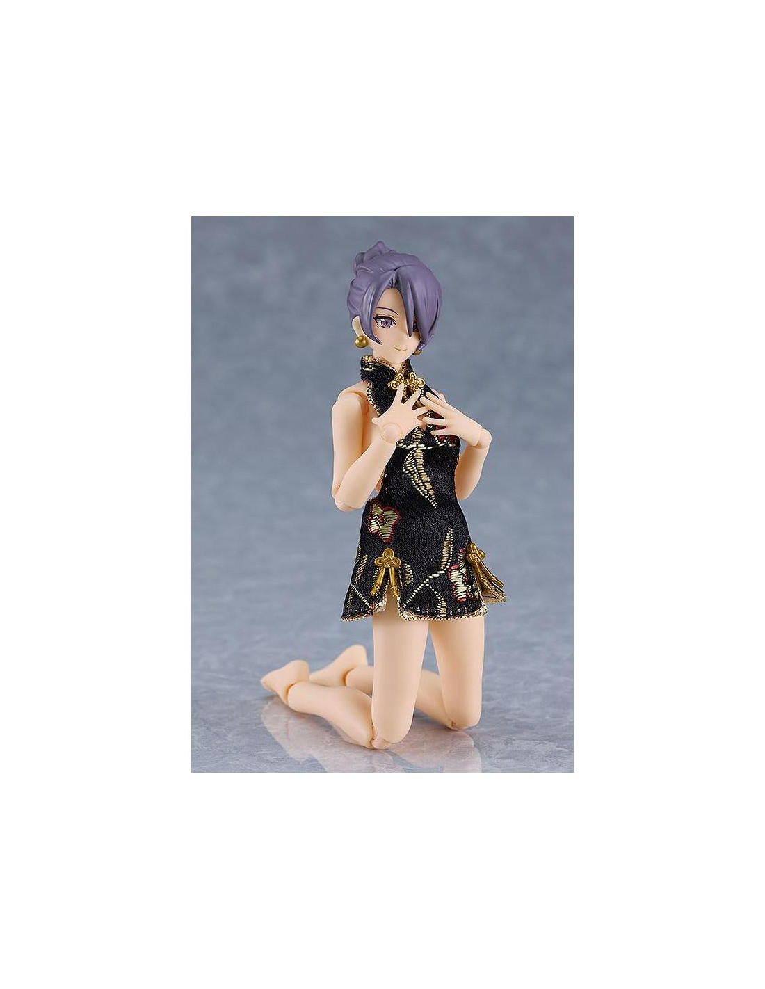De MAX Factory. Mika, el personaje de figma Estilos, lleva un elegante vestido chino negro, bellamente diseñado por AffettoAmoroso Hinaki. Esta figura incluye una placa de cara sonriente y muestra detalles intrincados, incluso presenta ropa interior tipo T-back. Comparte la misma altura y forma de cuerpo que Cuerpo de Baño (Chiaki). Para mayor lujo, se incluyen partes de cordón decorativas que se pueden adjuntar al atuendo con cinta de doble cara. Al ser de tamaño estándar de figma, puedes intercambiar partes de cabeza con otros personajes, aunque la compatibilidad puede variar con algunas figuras de acción figma. Además, esta figura viene con un soporte articulado de figma para opciones de posado versátiles. Ten en cuenta que las imágenes y patrones pueden variar según el corte de la tela.