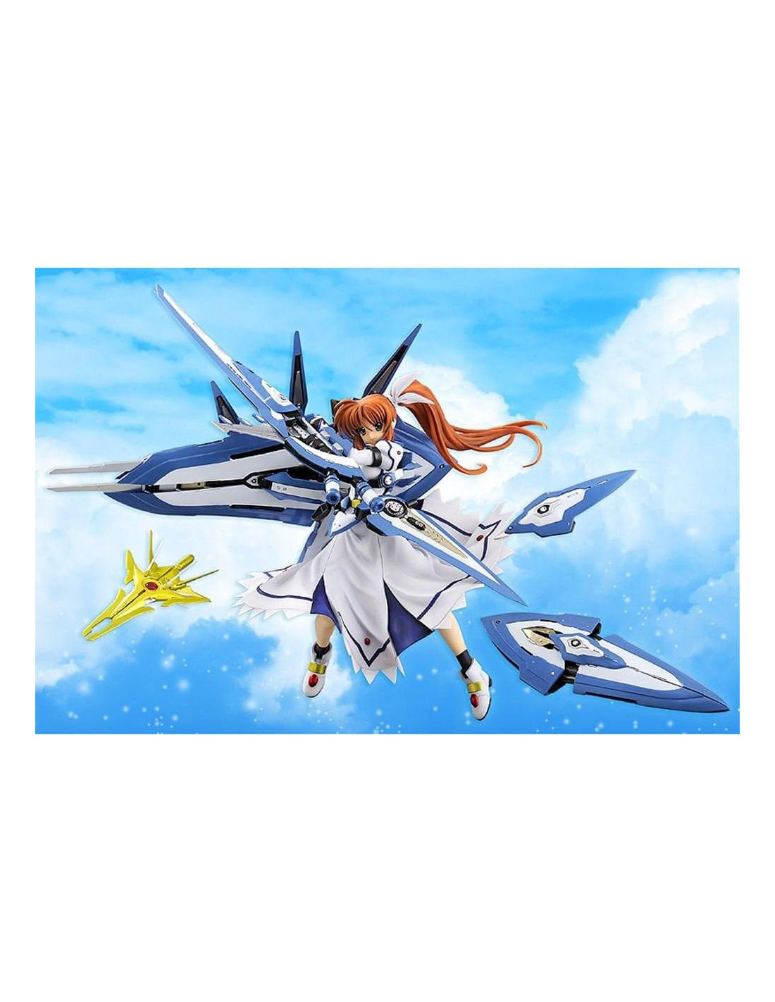 De FREEing. De la serie de manga que actualmente se publica en Nyan Type Magazine, 'Magical War Lyrical Nanoha Force' llega una figura de la adulta Nanoha Takamachi equipada con su Armamento Fortress CW-AECOOX. La figura reproduce fielmente el diseño original del manga en escala 1/8, incluyendo el enorme cañón de asalto y los escudos incluidos con su Armamento AEC! Los escudos grande, mediano y pequeño están todos incluidos y cada uno se puede adjuntar al brazo derecho de Nanoha. Usando el pedestal incluido, también puedes exhibir Raising Heart junto a ella! ¡Disfruta de una Nanoha más imponente y madura que nunca!