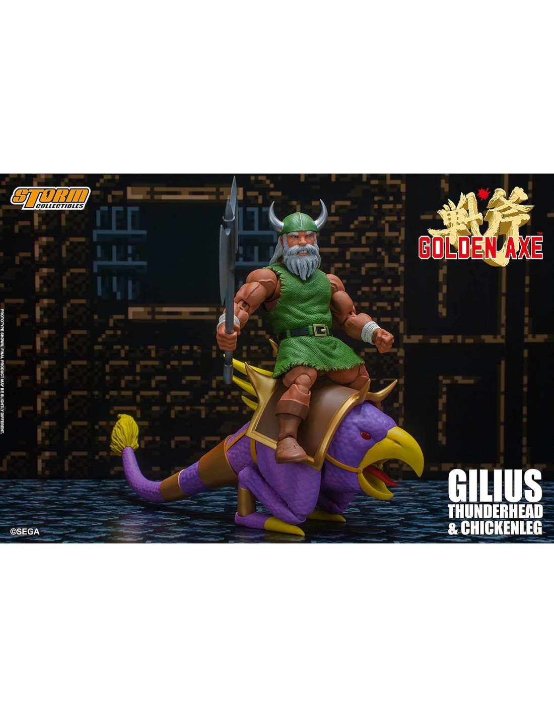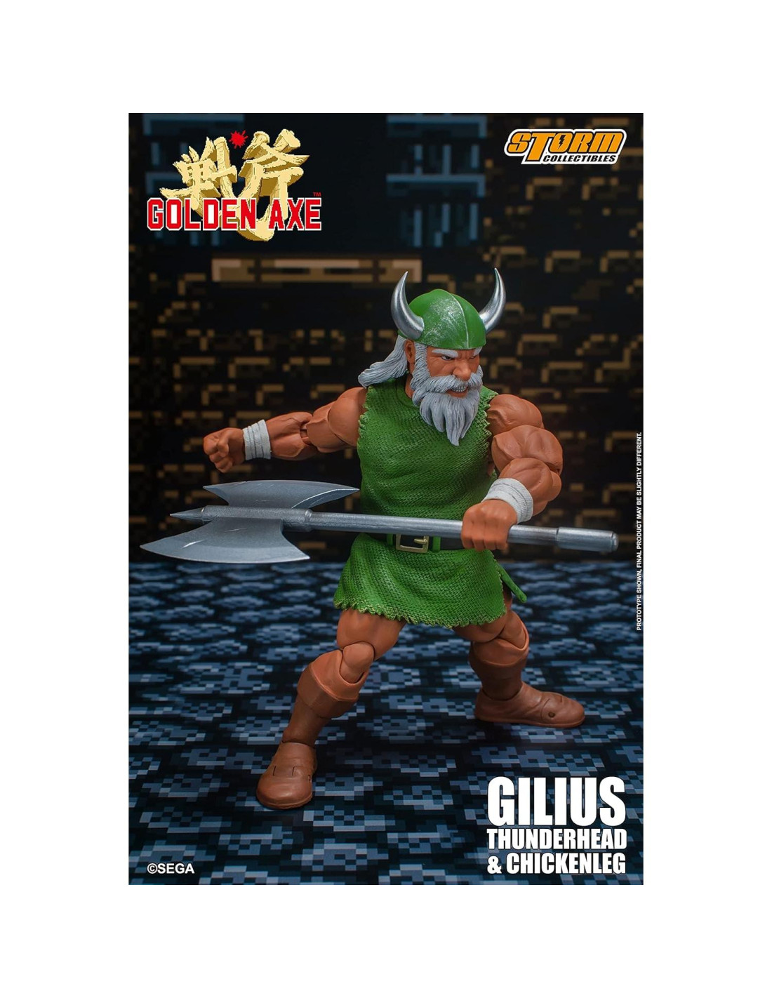 Gilius Thunderhead es un enano que empuña un hacha, que sirve como uno de los principales protagonistas en la franquicia Golden Axe. A pesar de su edad y estatura, es uno de los guerreros originales que se levantó contra Death Adder y es muy capaz de comandar a un monstruo Pierna de Pollo en batalla. [Contenido del Set] Pierna de Pollo, 2 x Cabezas intercambiables, 3 x pares de Manos intercambiables, 1 x Hacha de Gilius. Busque el origen del envío: Solo los artículos enviados desde América del Norte están siendo vendidos por minoristas autorizados de EE. UU. La caja del producto tendrá una etiqueta de advertencia de Bluefin, que es prueba de que está comprando un producto de Storm Collectibles con licencia oficial, distribuido por su único y autorizado distribuidor (Bluefin) para los mercados de EE. UU. Este producto ha sido probado exhaustivamente para seguridad y cumple con todas las regulaciones de seguridad de productos de consumo de América del Norte. La etiqueta adherida también otorga al comprador asistencia de soporte de producto dentro de los Estados Unidos.