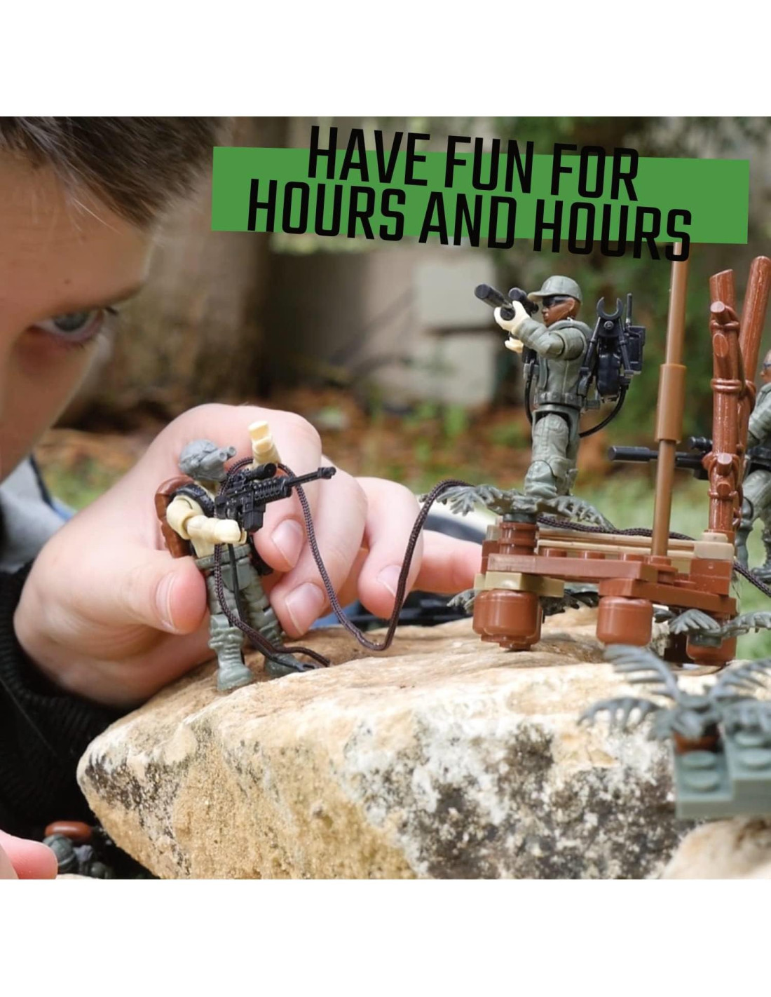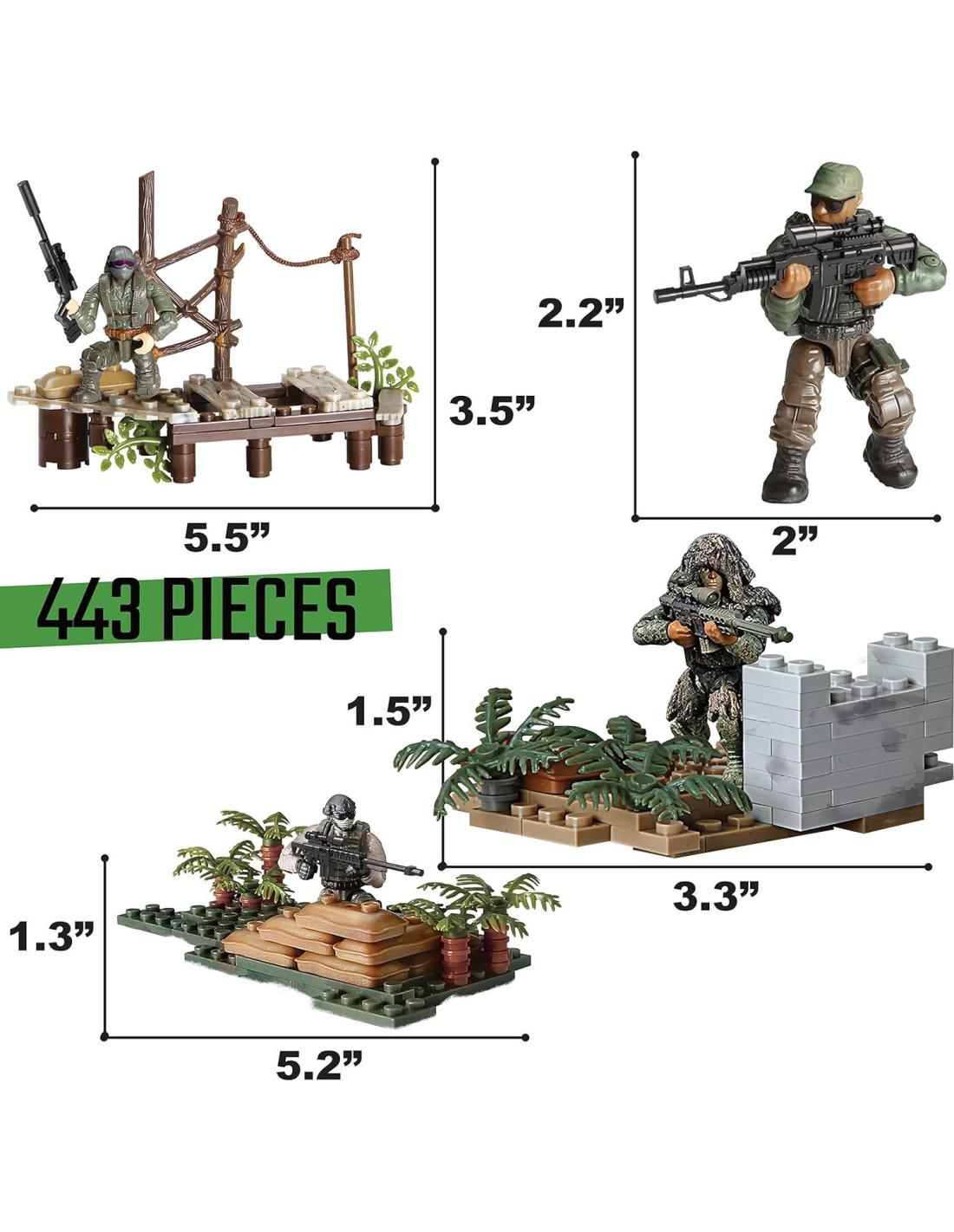 - Increíble Juguete Divertido para Fans del Ejército y Entusiastas de Operaciones Especiales - Este conjunto de figuras de acción miniatura militar 3 en 1 es una excelente manera de introducir a los niños en el mundo de los conjuntos de construcción de juguetes. Viene con 443 piezas para construir 3 tropas distintas llenas de acción con Tropas de Jungla, Francotirador con Traje Ghillie, Escuadrón de Defensa de la Jungla y muchos accesorios. Construye cada ejército con la ayuda de las instrucciones. Crea batallas épicas mientras ganas recuerdos inolvidables. ¡Genial para niños de 10 años o más o más jóvenes con la ayuda de adultos!