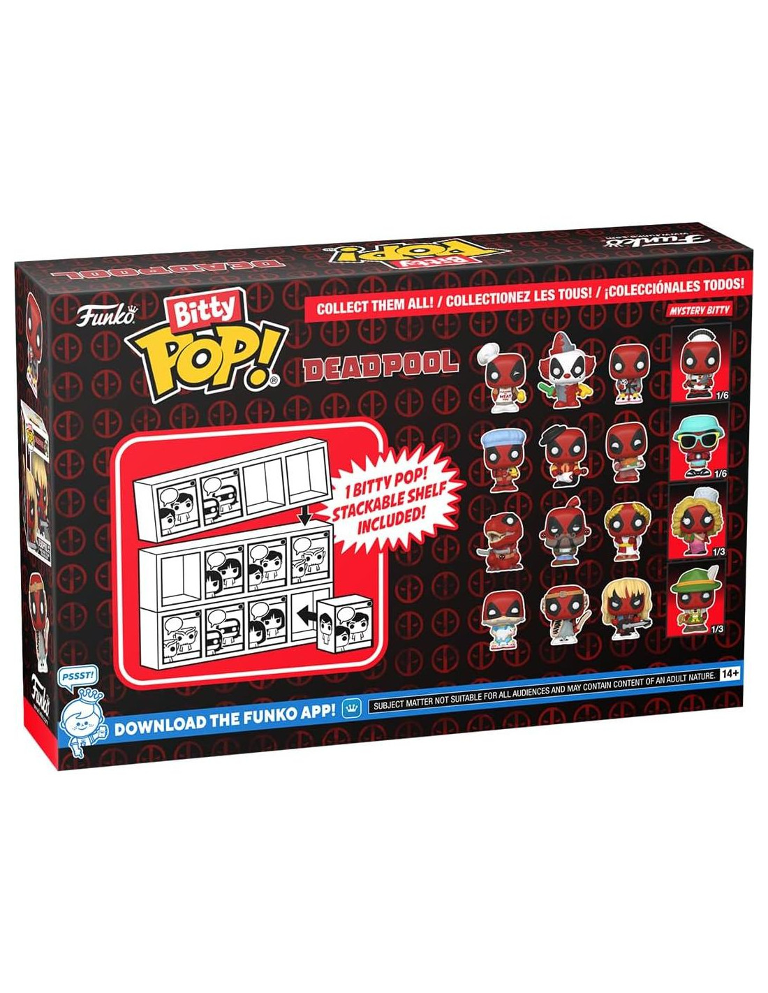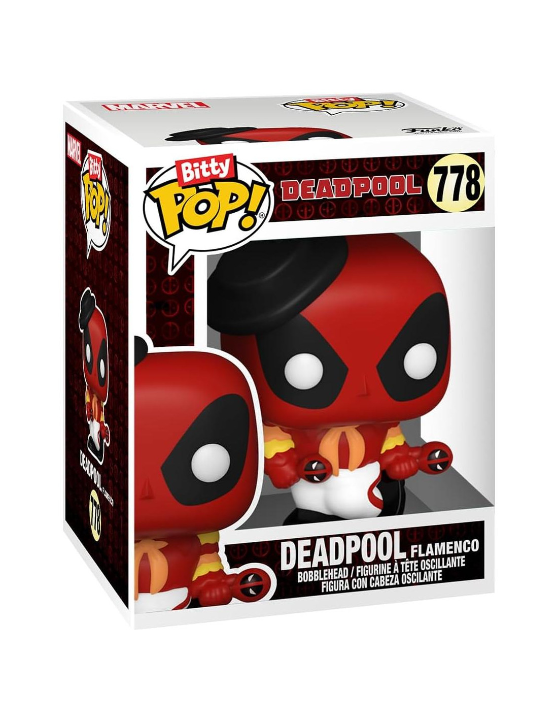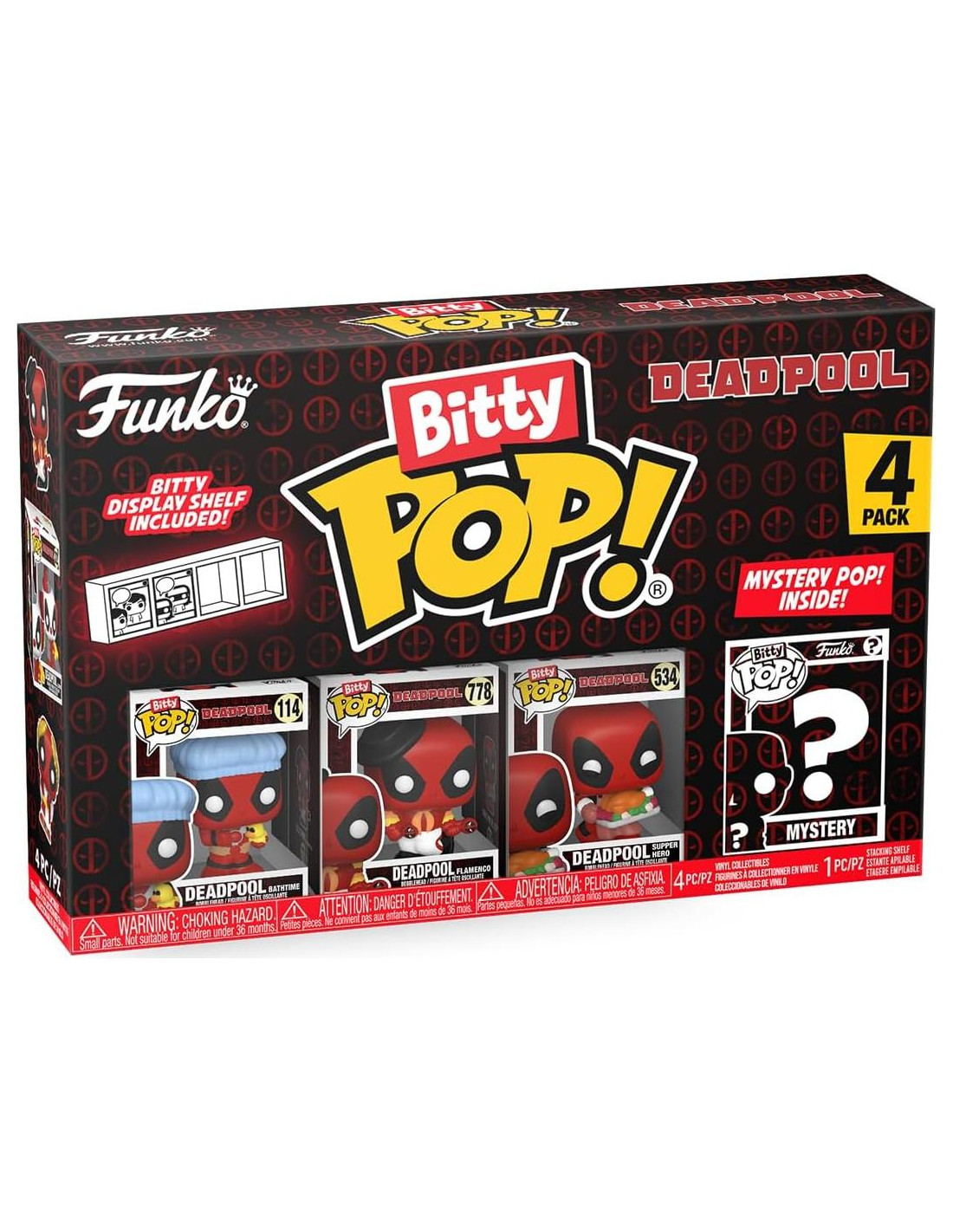 ¡Tus mercenarios favoritos con boca Pops! han sido reducidos a Bitty Pops! ¡Expande tu colección de Deadpool con este surtido de figuras Bitty Pop! que presentan al anti-héroe más icónico! Este paquete de 4 incluye Bitty Pop! Deadpool (Hora del baño), Bitty Pop! Deadpool (Flamenco), Bitty Pop! Deadpool (Superhéroe) y una figura Bitty Pop! sorpresa. Las posibles figuras Bitty Pops! sorpresa son Raras (1/3) Deadpool (Lederhosen), Raras (1/3) Deadpool (Concurso de Belleza), Hiper Raras (1/6) Deadpool (Turista) y Hiper Raras (1/6) Deadpool (Sirvienta Francesa). Los Bitty Pops! vienen empaquetados en cajas de acrílico duro con tapas inferiores desmontables. Las tapas inferiores desmontables también sirven como bases de acrílico, a las que se adhieren las figuras Bitty Pop!. ¡Clasifica y organiza tus Bitty Pops! con la caja de exhibición incluida! Las cajas de exhibición de acrílico son apilables y sostienen cuatro figuras Bitty Pop! cada una. Los coleccionables de vinilo tienen aproximadamente 0.9 pulgadas de altura. Cuatro figuras por compra de paquete individual. Advertencia: Peligro de asfixia. Los coleccionables son pequeños. No apto para niños menores de 3 años. La selección de artículos es aleatoria, ya que cada pieza está en un empaque ciego. No podemos aceptar solicitudes para artículos específicos. Puedes recibir figuras duplicadas.