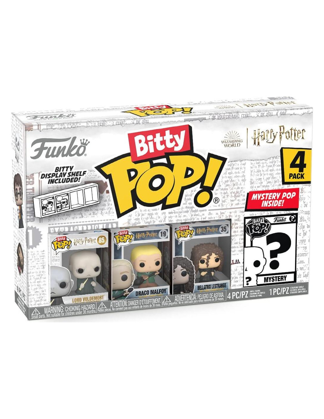 ¡Diminuendo! ¡Tus Pops! favoritos de Harry Potter han sido reducidos a Bitty Pops! ¡Expande tu colección del Mundo Mágico con este surtido de figuras Bitty Pop! que presentan a tus personajes más queridos de Harry Potter! Este paquete de 4 incluye Bitty Pop! Lord Voldemort, Bitty Pop! Draco Malfoy (Quidditch), Bitty Pop! Bellatrix Lestrange y una figura Bitty Pop! sorpresa. Las posibles figuras Bitty Pop! sorpresa son Harry Potter (Quidditch) Hyper Rare (1/6), Hedwig Hyper Rare (1/6), Fawkes Rare (1/3) y Severus Snape Rare (1/3). Los Bitty Pops! vienen empaquetados en cajas de acrílico duro con tapas inferiores desmontables. Las tapas inferiores desmontables también sirven como bases de acrílico, a las que se adhieren las figuras Bitty Pop!. Las figuras de vinilo tienen aproximadamente 0.9 pulgadas de altura. Cuatro figuras por compra de paquete único. Advertencia: Peligro de asfixia. Los coleccionables son pequeños. No apto para niños menores de 3 años. La selección de artículos es aleatoria, ya que cada pieza está en un empaque ciego. No podemos aceptar solicitudes para artículos específicos. Puedes recibir figuras duplicadas.