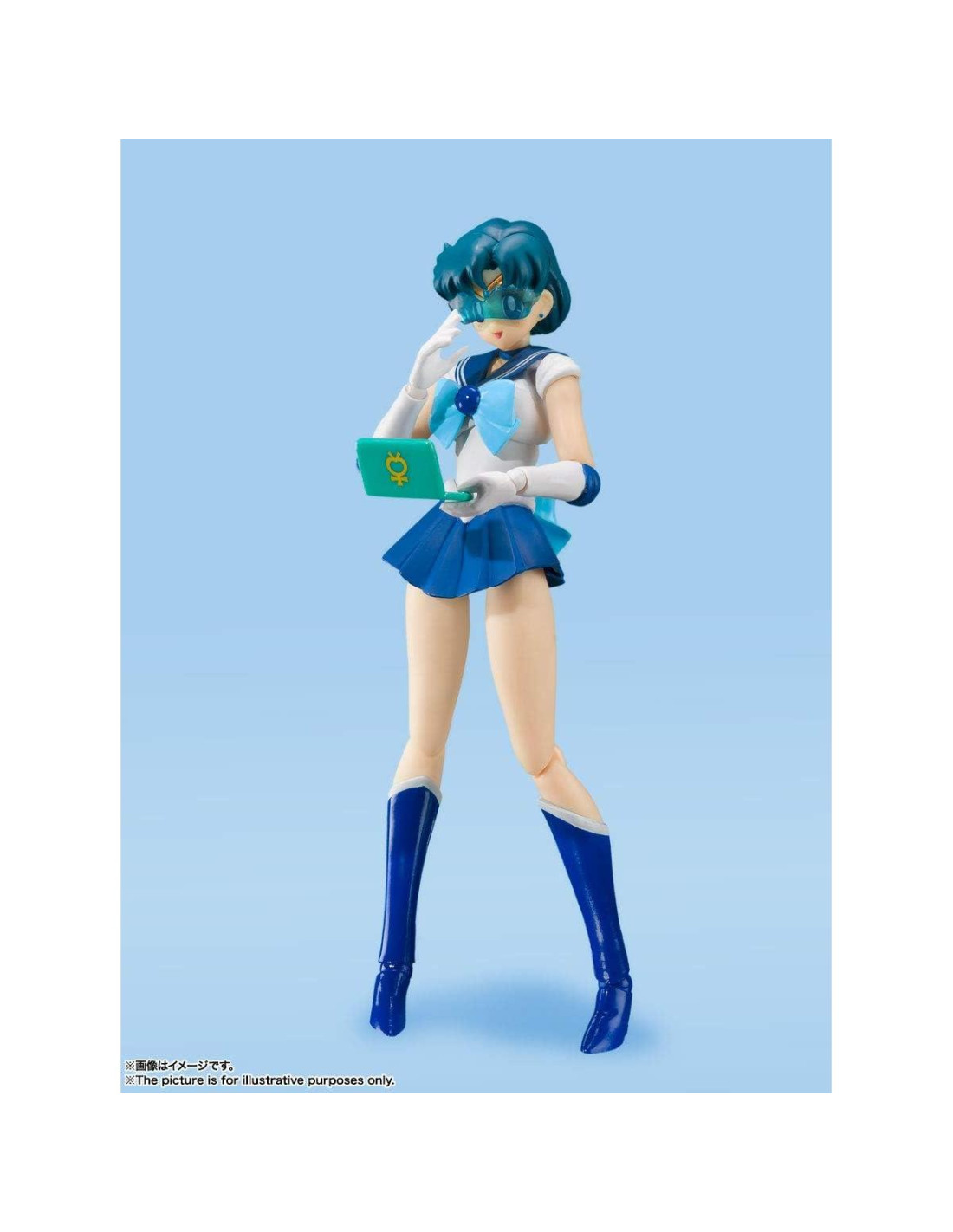 - Figura de Acción S.H. Figuarts de Sailor Moon Pretty Guardian de 6 Pulgadas - Edición Color Animación de Sailor Mercury