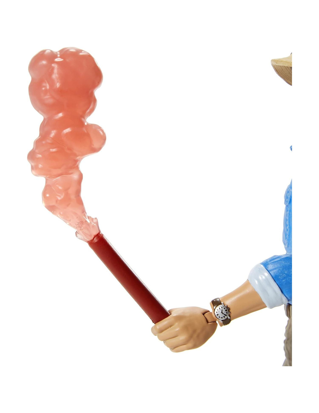 - Los accesorios inspirados en la película incluyen gafas de sol y una bengala "fumando". También se incluye una cabeza y mano intercambiables para versatilidad en poses y juego. Una de las manos agarra una garra de raptor.