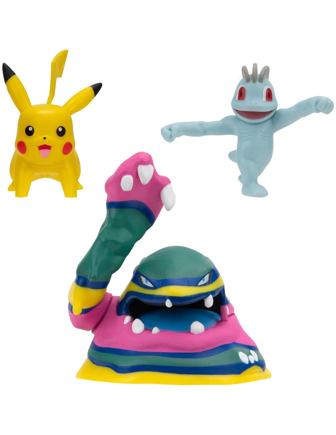 Desata los poderes de eléctrico, combate, veneno y oscuro con este Paquete de 3 Figuras de Batalla de Pokémon. Entrena con el tipo eléctrico Pikachu antes de unirte a las fuerzas del tipo de batalla Machollo. Cuando estés listo para pelear, saca al Alola Sleimok de tipo Veneno e Imlight y posiciona dinámicamente sus extremidades móviles. Todos los Pokémon con una altura de 5 cm (1.97 pulgadas) caben en la Pokébola Clip 'N' Go y el Playset de Carry Case. Estas figuras altamente detalladas parecen haber salido de la serie animada de Pokémon. Producto oficialmente licenciado de Pokémon de Jazwares. A partir de 4 años Contiene: - (1) figura de Pikachu de 5 cm - (1) figura de Machollo de 5 cm - (1) figura de Alola Sleimok de 7.5 cm (2.95 pulgadas)