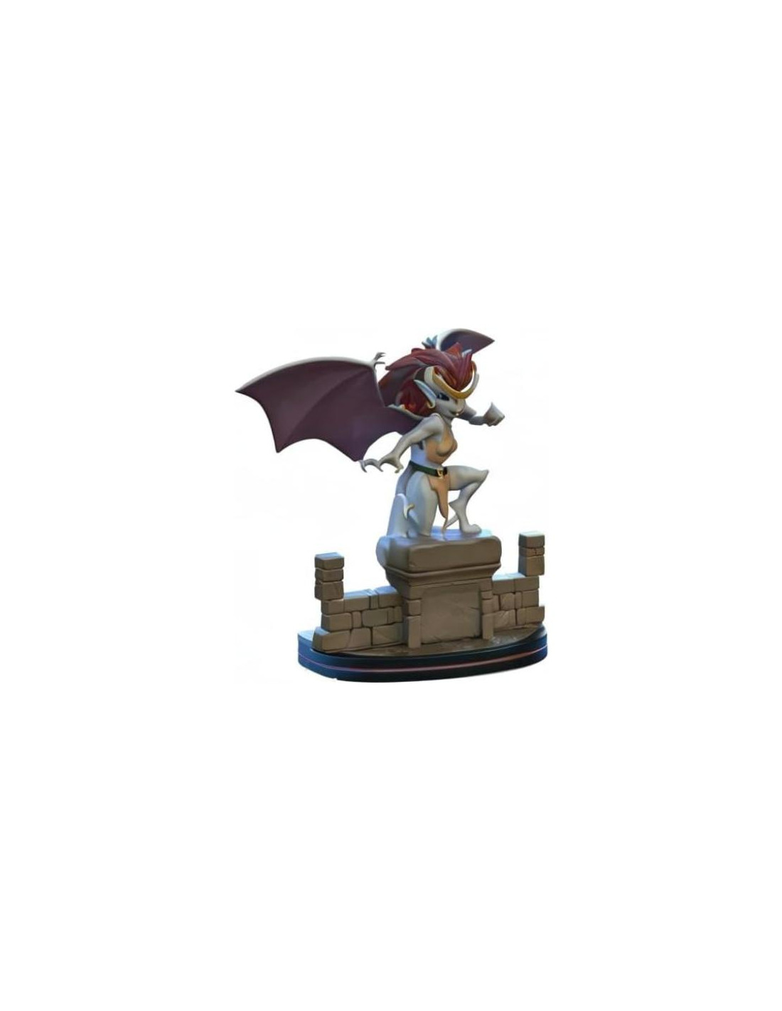 - Inspirada en la clásica serie animada de Disney Gargolas, la Demona Q-Fig presenta a la She-Demon mientras se prepara para saltar de su atalaya y atacar con garras afiladas como cuchillas y una cola prehensil y viciosa.