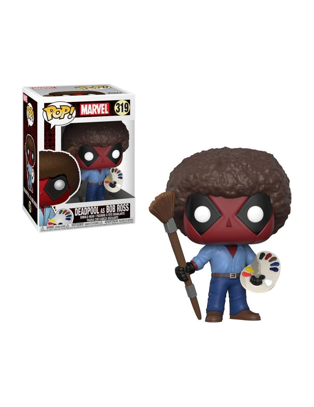 De Deadpool Tiempo de Juego, Bob Ross, como un vinilo POP estilizado de Funko! La figura mide 3 3/4 pulgadas (9.5 cm) y viene en una caja de exhibición con ventana. ¡Mira las otras figuras de Deadpool Tiempo de Juego de Funko! ¡Colecciónalas todas!