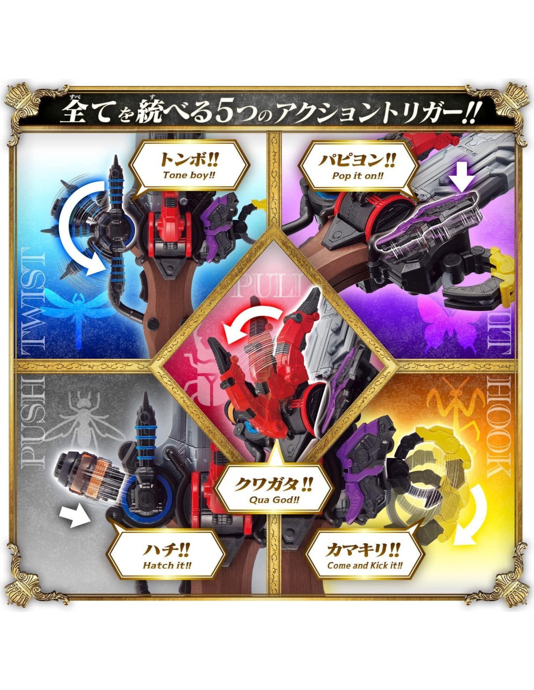 - Transformación: Equipado con 5 interruptores, la hoja se iluminará con el sonido al controlar el interruptor. Cada uno de los 5 King Aggers puede disfrutar transformándose en un nuevo aspecto