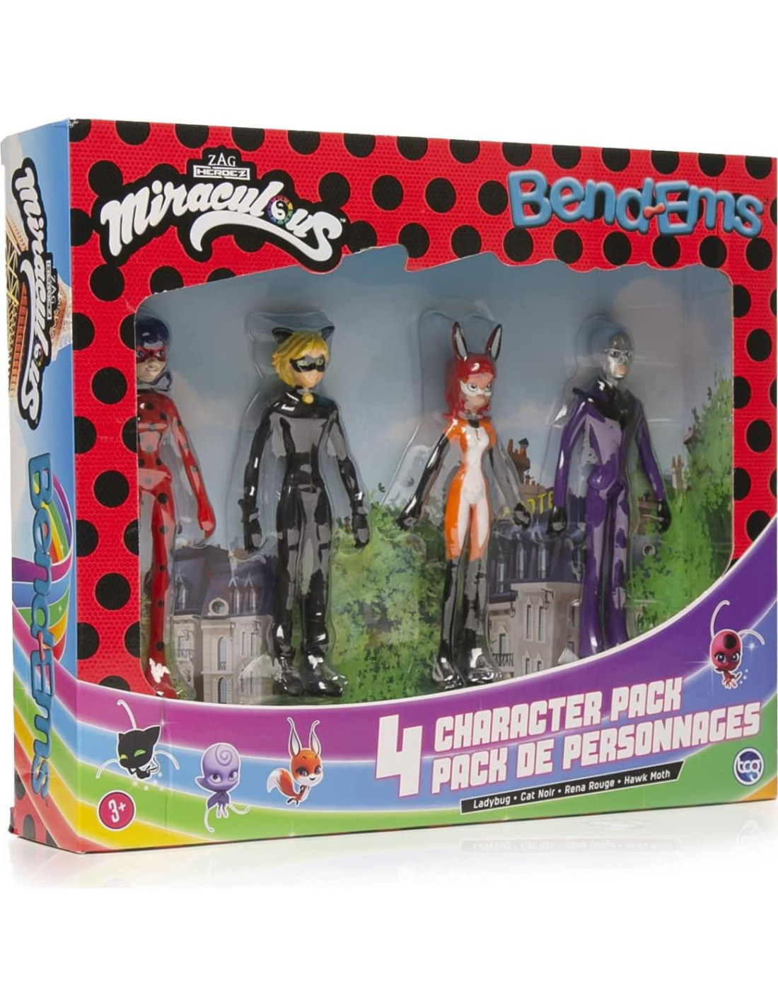 El paquete de 4 Bend-Ems Milagrosos viene con todos tus personajes favoritos incluyendo Ladybug, Cat Noir, Rena Rouge y Hawk Moth.