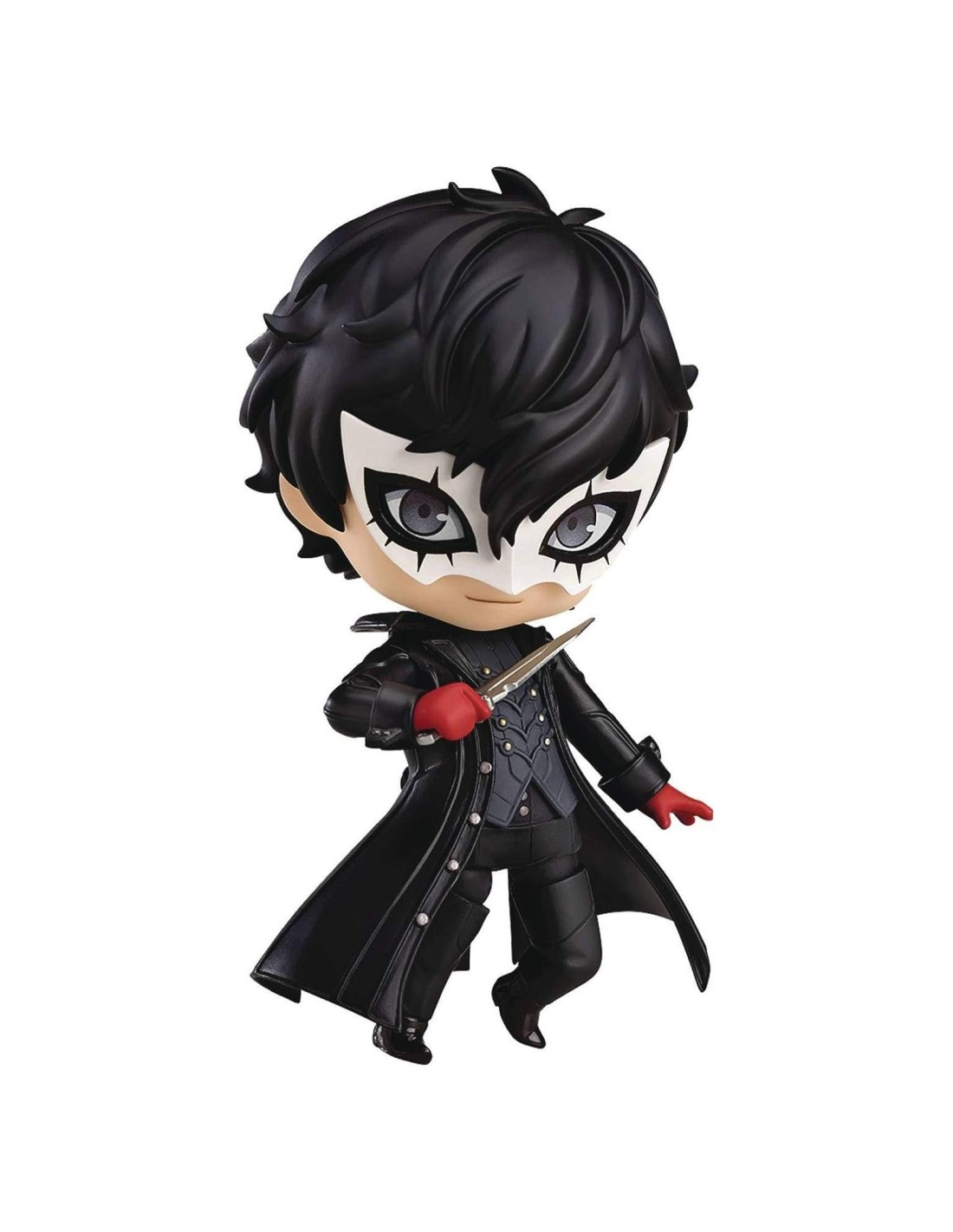 De Good Smile Company. Del popular juego, persona5 llega un Nendoroid del protagonista, Joker, en su traje de ladrón fantasma! Además de su indispensable cuchillo y pistola, su máscara también está incluida como una parte que se puede colocar en su mano! Puedes recrear todo tipo de escenas, como secuencias de invocación de persona y finales de ataque total! Dos placas faciales, su expresión estándar y una expresión sonriente, están incluidas. Además, su máscara y partes de ojos intercambiables están incluidas, lo que hace un total de ocho expresiones diferentes posibles. Asegúrate de agregarlo a tu colección, junto con los otros Nendoroids de la serie persona!