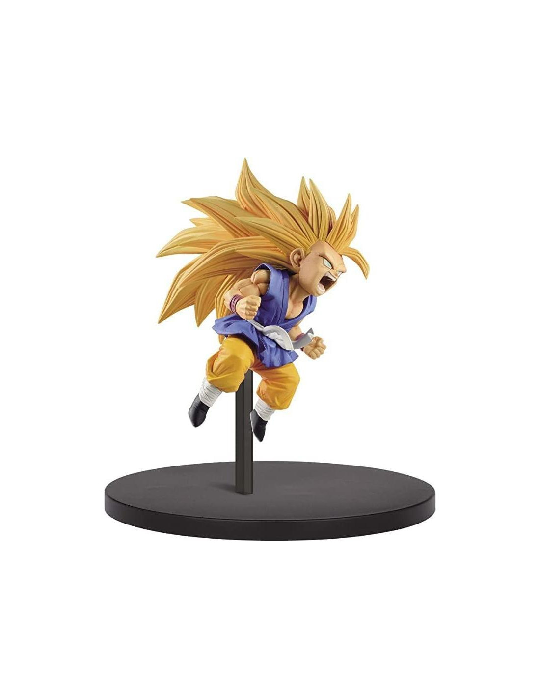 La estatua de Dragon Ball Super Saiyan 3 Goku Son Goku Fes. Vol. 10 mide aproximadamente 20.32 centímetros de altura y viene empaquetada en una caja cerrada.