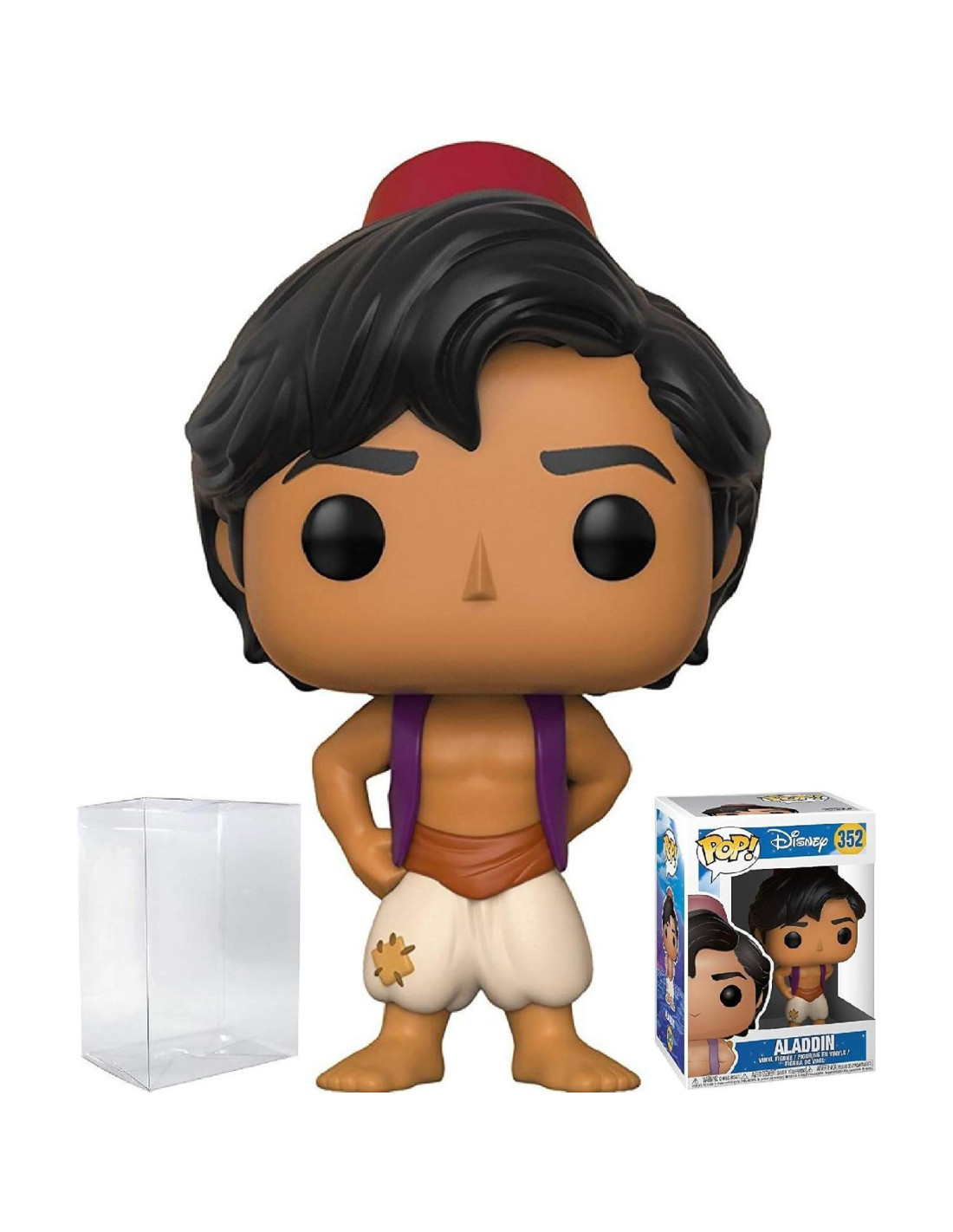 De Disney Aladino, Aladino, como una figura de vinilo Pop! estilizada. La figura mide 9.53 centímetros y viene en una caja de exhibición con ventana. Colecciona toda la línea de Pop! Vinilos de Disney Ultimate Princess: Cenicienta, Gus Gus en la Zapatilla, Jasmine, La Sirenita Ariel, Mérida, Campanita, Pocahontas, Mulan, Rapunzel de Enredados, Blancanieves, Aurora de La Bella Durmiente, Bella de La Bella y la Bestia, Elsa y Anna de Frozen! Colecciona toda la línea de Pop! Vinilos de Aladino: Aladino, Princesa Jasmine, Rajah, Abu, Jafar, Jasmine disfrazada, elefante Abu, Iago, Genio con Lámpara, Príncipe Ali, Momento de Película Aladino Genio y Paseo en Alfombra Mágica! Colecciona toda la línea de Pop! Vinilos de Disney La Sirenita: Ariel Vestido Azul, Ariel Gown, Sebastián, Flounder, Eric y Úrsula! Colecciona toda la línea de Pop! Vinilos de La Bella y la Bestia: Bella de Invierno, Bestia de Invierno, Gastón, Reloj Cogsworth, Bella Campesina, Lumiere, Sra. Potts y Chip, Bella Nerd, Bella de Vestido Amarillo y Bella de Celebración. Colecciona toda la línea de Pop! Vinilos de Blancanieves y los Siete Enanitos: Blancanieves, Bruja, Tontín, Gruñón, Estornudo, Tímido, Dormilón, Feliz y Doc. Colecciona toda la línea de Pop! Vinilos de Villanos de Disney: Malefica, Cruella de Vil, Capitán Garfio, Úrsula, Jafar, La Malvada Bruja de Blancanieves! (Cada uno se vende por separado) Incluye una funda protectora para Pop adecuada para cualquier inversión de coleccionista.