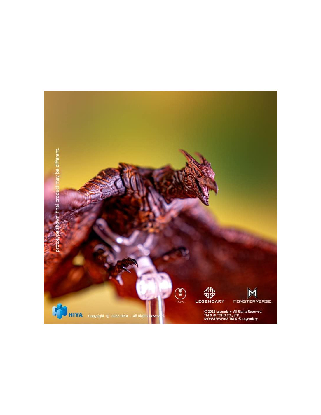 De Hiya Toys. ¡Una Exclusiva de PREVIEWS! ¡Desata el asombroso poder del legendario demonio de fuego con esta figura de acción Rodan de la Serie Básica Exquisita de Hiya Toys, Exclusiva de PREVIEWS! Inspirada en Godzilla: Rey de los Monstruos (2019), esta figura altamente detallada muestra la enorme envergadura de las alas de Rodan, que se extienden a impresionantes 39.9 cm de ancho, y cuenta con 16 puntos de articulación, lo que permite poses dinámicas en el aire con la base de vuelo incluida. Las alas, hechas de material PVC con un alambre interno, ofrecen flexibilidad y versatilidad para crear poses y exhibiciones cautivadoras. Desde sus detalles precisos en pantalla hasta la meticulosamente renderizada textura de piel áspera, esta figura de Rodan captura la esencia del icónico titán. ¡Agrega esta figura Exclusiva de PREVIEWS a tu colección y revive la emocionante batalla de Godzilla: Rey de los Monstruos!