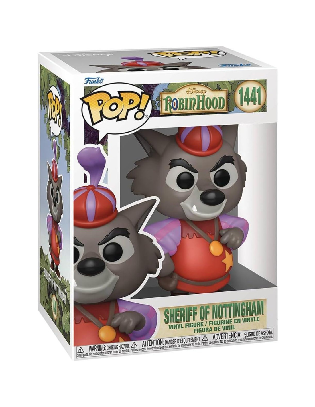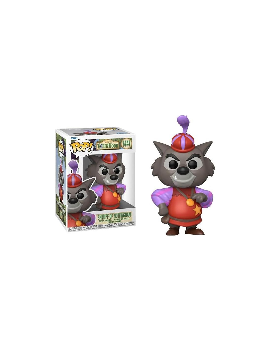- De Robin Hood, Sheriff de Nottingham, como una figura de vinilo Pop! estilizada de Funko!