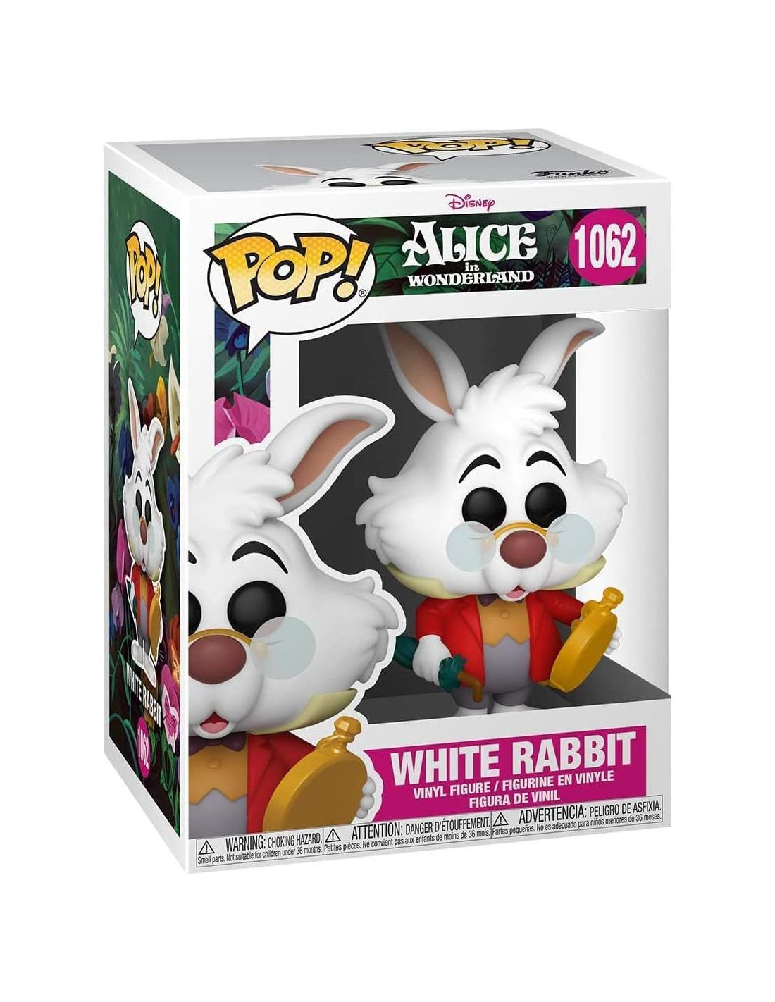- De Alicia en el País de las Maravillas 70, Conejo Blanco con Reloj, como una figura de vinilo Pop! estilizada.