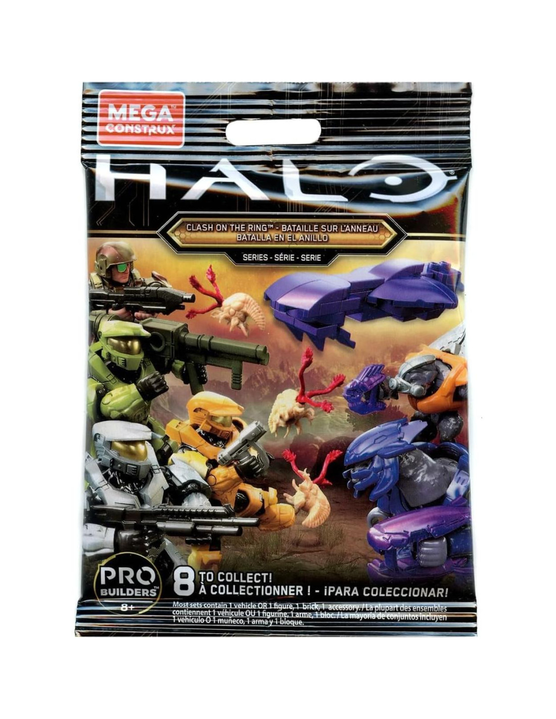 ¡Construye tus fuerzas con 8 personajes coleccionables de Halo en equipo listo para la batalla! Con figuras de acción micro de UNSC, Covenant y Banished para coleccionar, encuentra un héroe UNSC o enemigo alienígena en cada paquete sorpresa. Cada uno viene con su propia armadura desmontable y arma lista para la batalla. ¡Colecciónalos todos y construye tus fuerzas!