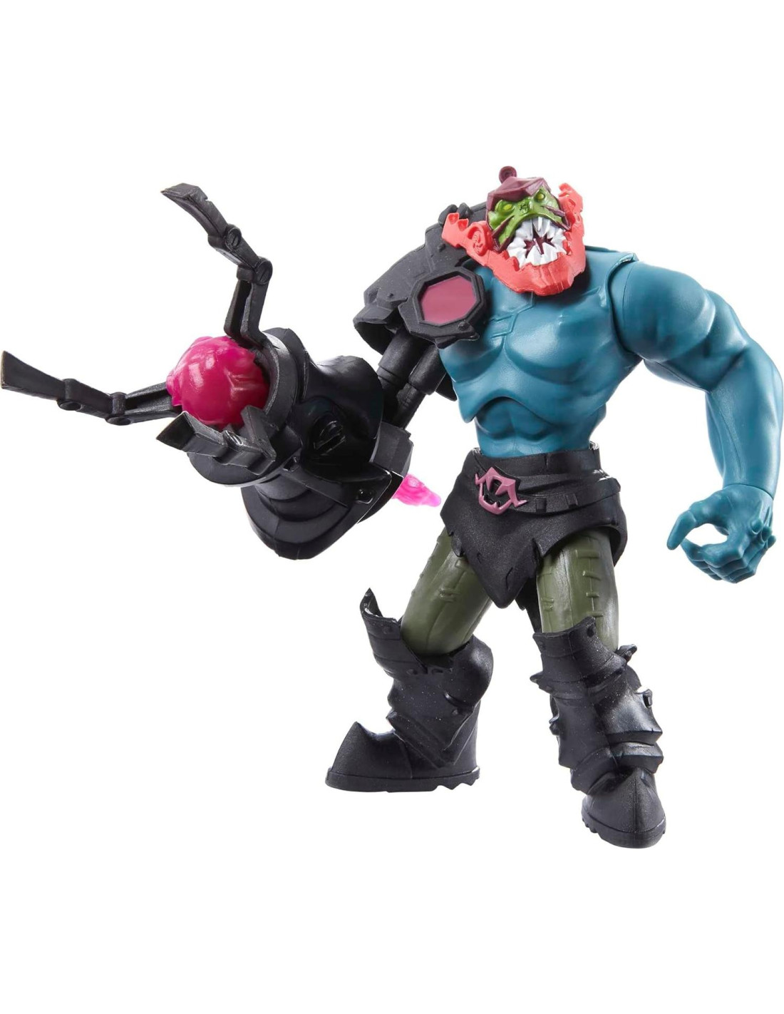 - La figura de Trap Jaw viene con una característica de ataque de resorte inspirada en los movimientos de la pantalla para dar vida a la serie -- solo tira y suelta para ver volar su explosión de plasma