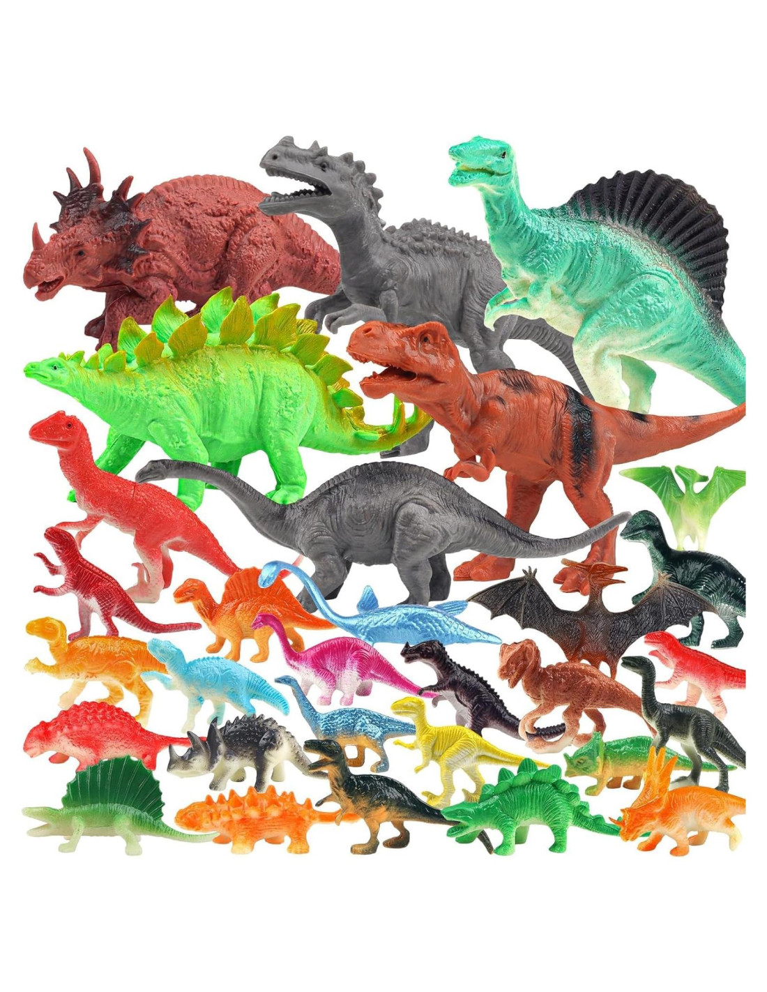 - Contenido del Paquete: El set de juego de dinosaurios incluye 8 * figuras de dinosaurios realistas, 28 * figuras de dinosaurios mini.