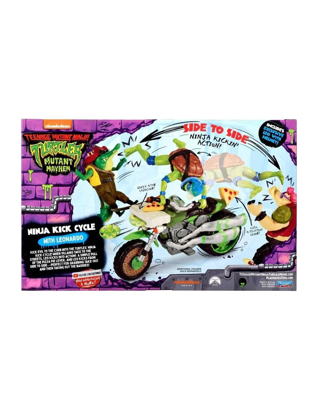 - AUTÉNTICO: El poderoso Ciclo de Patada Ninja de doble escape está detalladamente auténtico y viene con una figura de acción de Leonardo con casco, exclusiva y removible.