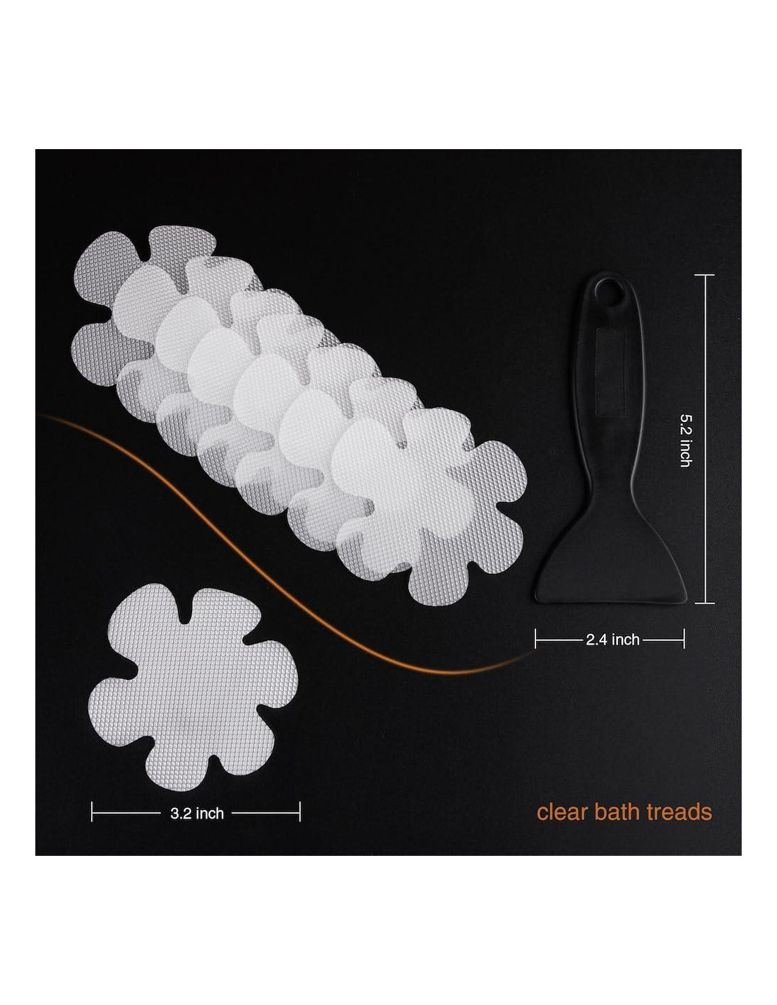 - El paquete comprende 36 piezas (diámetro aproximadamente 8.0 cm o 3.15 pulgadas) de calcomanías transparentes junto con 1 raspador de silicona de alta calidad. Idealmente, las 36 calcomanías deberían ocupar toda la superficie, reduciendo así el riesgo de resbalones accidentales. Además, incluso puedes usar estas calcomanías en las escaleras para hacerlas mucho más seguras.