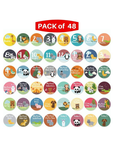 - Incluye: calcomanías de recién nacido y de 1-12 meses, calcomanías de cumpleaños de 1-5 años, 18 calcomanías de "Mi Primero" y de fiestas, 8 calcomanías de hitos "Puedo", además de 4 calcomanías en blanco para escribir - Todo en un paquete