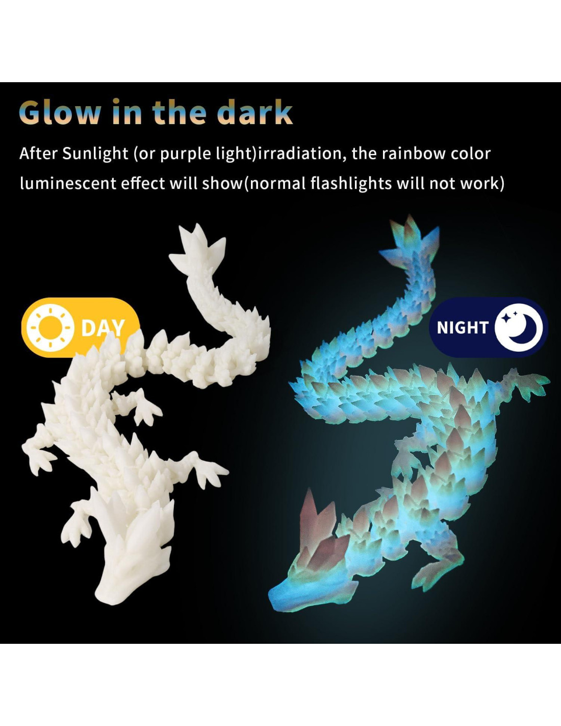 Jefuzh 3pcs 30.48cm Dragón de Cristal Impreso en 3D, Dragón Articulado Flexible Impreso en 3D, Decoración de Oficina en Casa Juguetes de Escritorio Ejecutivos (Arcoíris Negro Luminiscente)