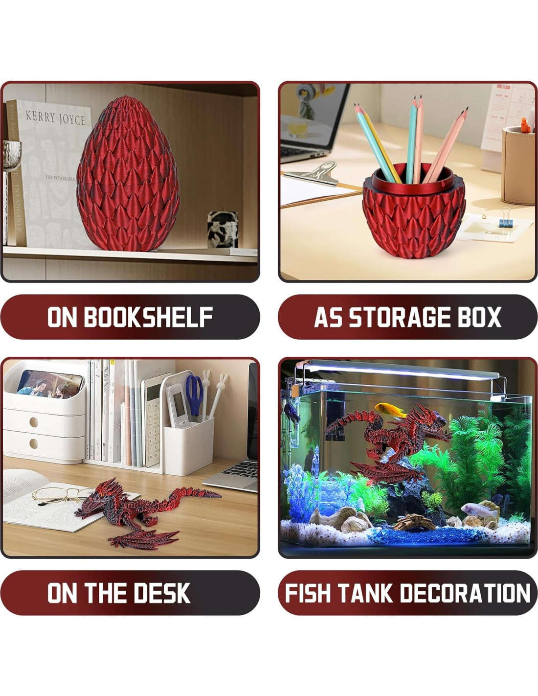 - Colorido, Resistente y Duradero: Los Huevos de Dragón Dentro No Solo Son Visualmente Impresionantes, Sino También Muy Interesantes. Puedes Pasar Unas Horas Jugando con Este Dragón 3D y Posarlo en Diferentes Posiciones.