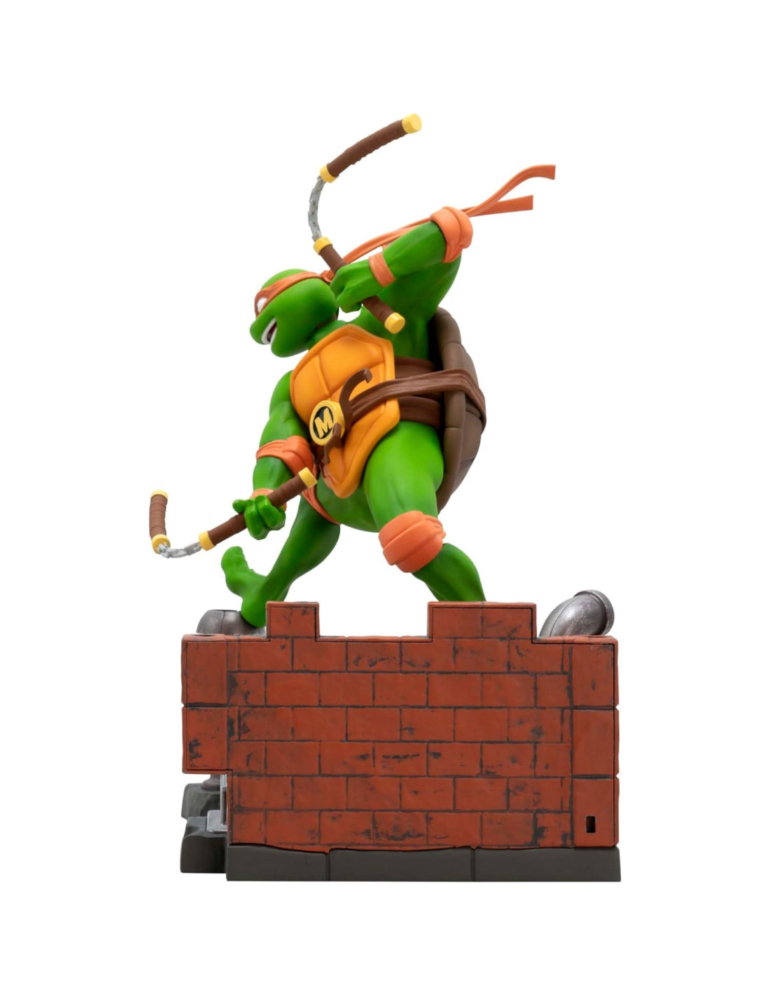 - DISEÑO - Presenta una representación detallada y precisa de Michelangelo, una de las icónicas Tortugas Ninja, en una pose dinámica y llena de acción. El diseño está inspirado en la serie de dibujos animados, brindando una sensación nostálgica y auténtica al coleccionable.