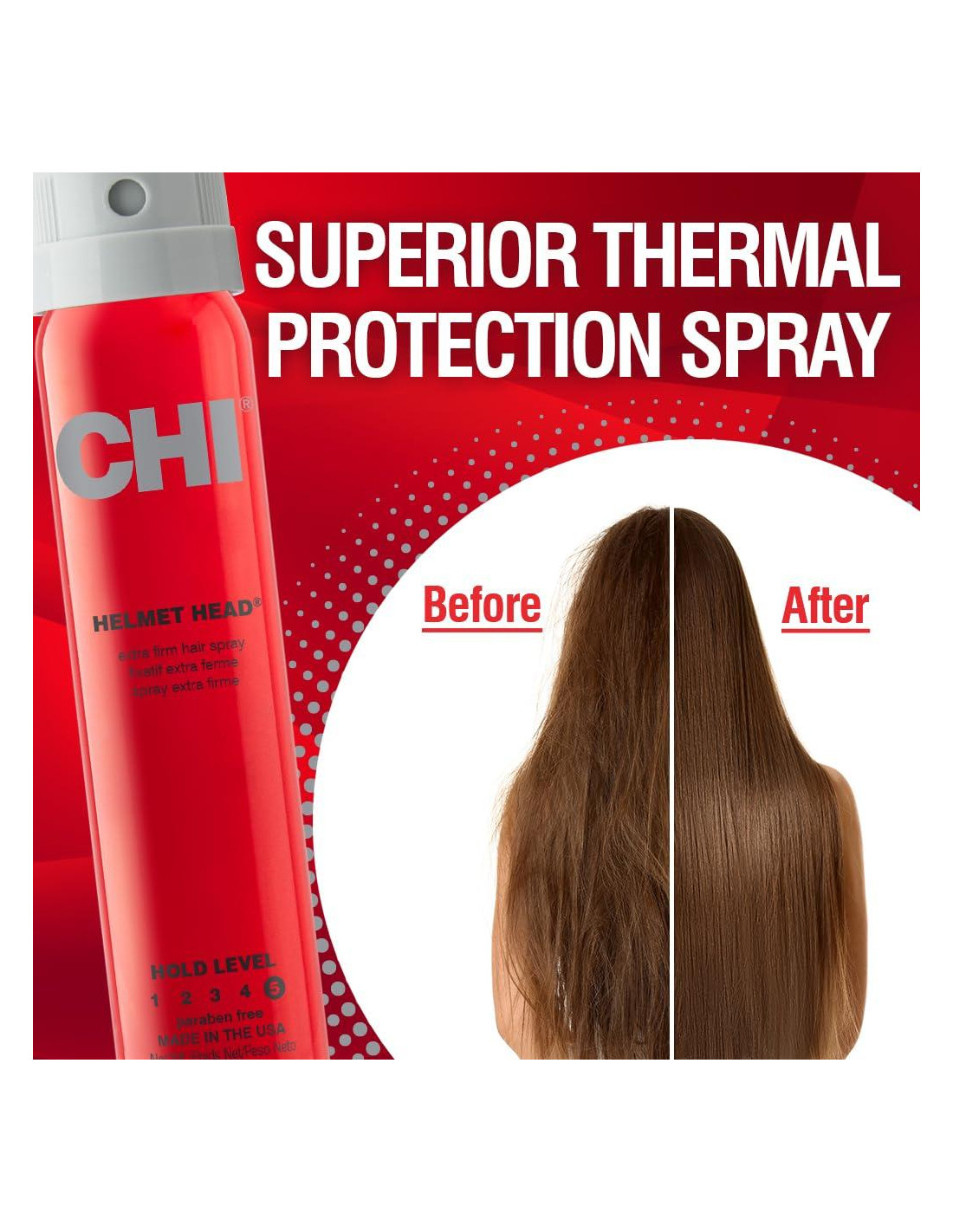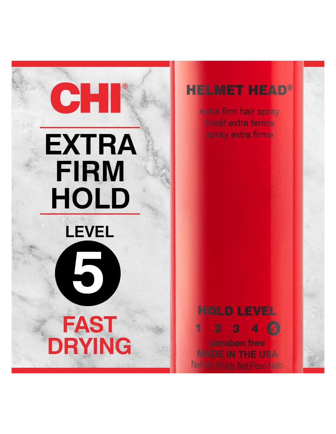 - SUJECIÓN EXTRA FIRME: La laca para el cabello CHI Casco Cabeza ofrece una sujeción extra firme, manteniendo tu peinado intacto durante todo el día. Esta laca proporciona control duradero para varios peinados y combate los efectos de la humedad, manteniendo el frizz y los cabellos sueltos a raya.