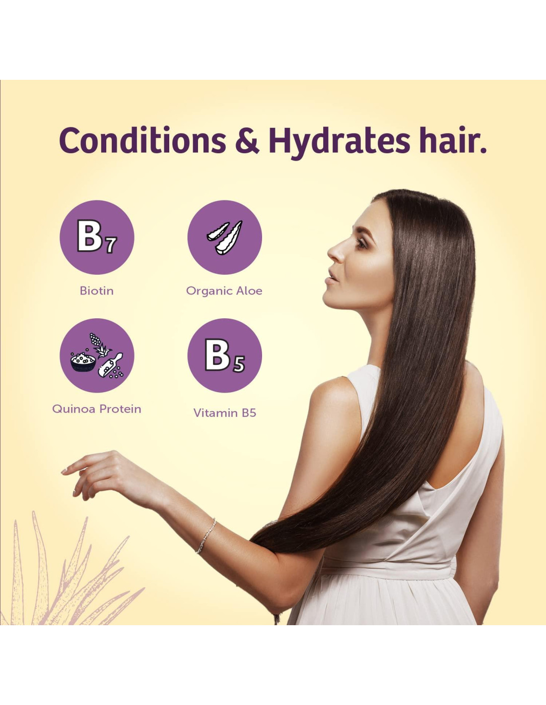 - UN SPRAY PARA EL CABELLO RICO EN NUTRIENTES: El aloe, la vitamina B5, la biotina y la proteína de quinoa en la fórmula natural del spray para el cabello acondicionan y protegen tu cuero cabelludo.
