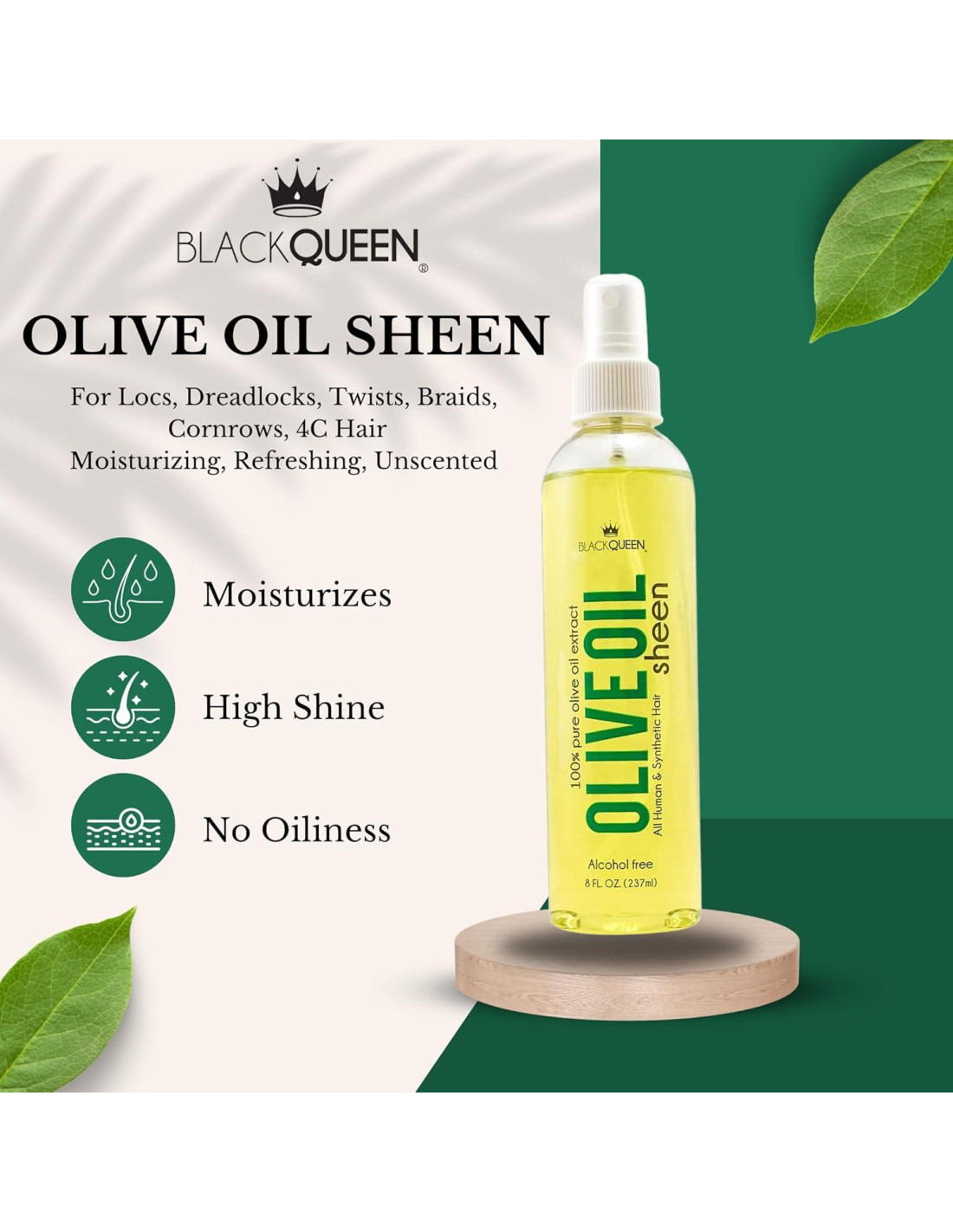 Spray de Brillo de Aceite de Oliva Black Queen, una solución revolucionaria diseñada para simplificar y mejorar el mantenimiento de los locs. Este producto único combina los excepcionales beneficios del aceite de oliva con la conveniencia de un frasco de spray, creando una herramienta indispensable para cualquier tipo de cabello natural. Superando los desafíos de la retención de suciedad y olores asociados con los locs. Ofrece elegancia hidratante, eficacia versátil para todos los tipos de locs y excelencia protectora. Con aplicación conveniente, idoneidad para todas las etapas de los locs y una promesa de calidad premium y resultados inigualables, eleva la rutina de cuidado del cabello a nuevas alturas, asegurando locs impresionantes y bien mantenidos con una apariencia brillante y lustrosa. Cómo Usar: 1. Sostenga el spray a 10 a 15 centímetros de distancia, distribuyendo uniformemente el producto a lo largo de sus locs. 2. Para locs cortos, incline la cabeza hacia abajo y rocíe con moderación para cubrir raíces y puntas simultáneamente. 3. Para locs largos, incline la cabeza y rocíe cada loc por separado. 4. Rocíe de raíces a puntas para fortalecer el cabello y apretar los locs. 5. Use una pequeña cantidad para evitar que su cabello se sienta pesado. 6. Evite rociar en exceso para prevenir sequedad y rigidez. 7. Use los dedos para peinar y distribuir uniformemente el producto. 8. No use el spray a diario para mantener la textura de los locs. 9. Refresque sus locs usando el spray cada vez que lave su cabello. Ingredientes: Aceite de Cártamo, Aceite de Coco, Aceite de Soja, Aceite de Jojoba, Aceite de Aguacate, Aceite de Canola, Extracto de Aceite de Oliva, Vitaminas A, D y E, Sin fragancia