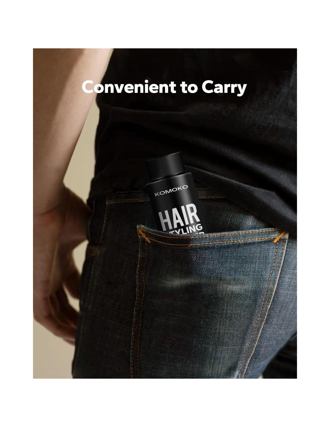 - Voluminizador Instantáneo: Nuestro polvo para estilizar el cabello está diseñado específicamente para hombres y puede hacer que tu cabello luzca voluminoso y estilizado en menos de un minuto. Puedes usar este polvo para crear cualquier peinado que desees, crear una textura ligera y aumentar tu encanto personal.