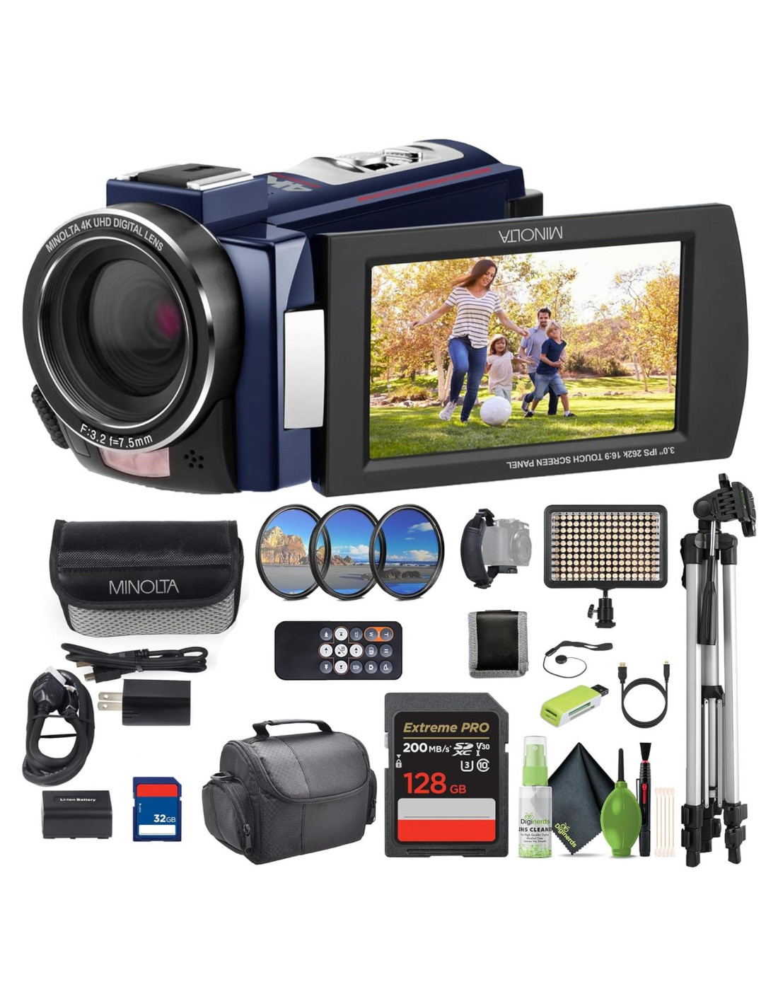 - El paquete incluye: MINOLTA MN4K25NV 4K Ultra HD / 30 MP Cámara de Video de Visión Nocturna (Azul) Tarjeta SanDisk SecureDigital Extreme PRO 128GB SDXC UHS-I C10,U3,V30 200MB/s Trípode Bolsa de Viaje de 72 PULGADAS Kit de limpieza CABLE MICRO HDMI A HDMI 6 PIES CORREA DE MANO Funda para tapa de lente Billetera para tarjeta de memoria Lector de tarjetas USB, SD/microSD KIT DE FILTRO MC PRO 3PC UV/CPL/F 37MM Luz LED