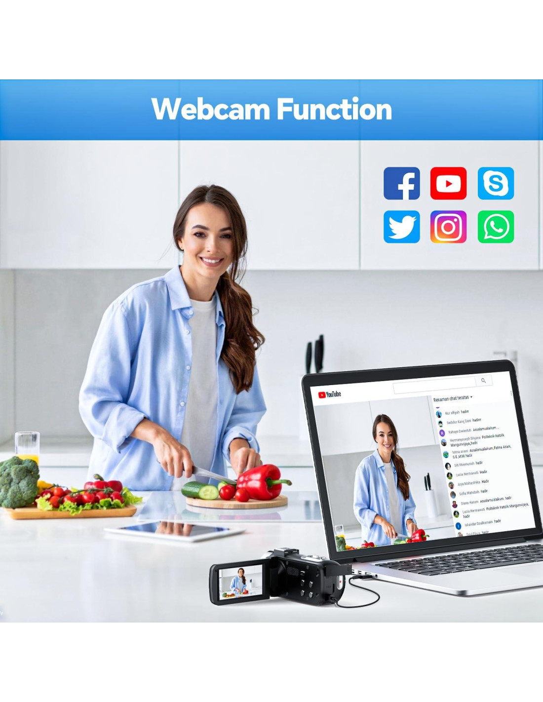 - [Webcam & Función de Pausa] La cámara de video 4K se puede usar como webcam cuando está conectada a tu computadora a través de un cable USB. Su modo "CÁMARA PC" permite a la cámara grabadora de video para chatear por video o transmitir en vivo, y es compatible con sistemas Windows XP/7/8/10 y MAC. Dado que la cámara de youtube soporta la función de pausa, puedes continuar grabando en el mismo archivo sin reiniciar.