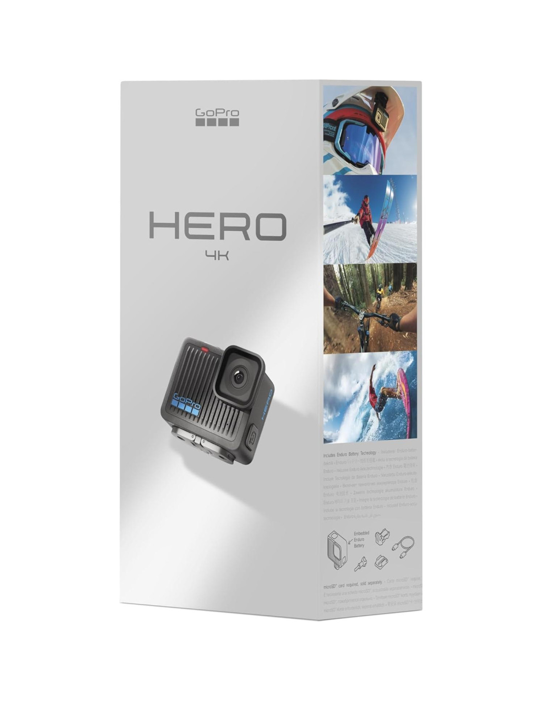 Pequeña por diseño y fácil de usar, nuestra cámara 4K más pequeña cuenta con un diseño superligero y resistente que es una fracción del tamaño y peso de otras cámaras GoPro, pero aún así es resistente al agua hasta 16 pies (5 m). Los controles simplificados te permiten grabar video 4K, fotos inmersivas y tomas en cámara lenta con solo presionar el botón del obturador. Después de grabar, reproduce tu video en la aplicación GoPro Quik. La estabilización de video HyperSmooth suavizará automáticamente los movimientos en tu metraje. Conecta HERO para cargar y tu metraje se subirá a la nube, se convertirá en un video destacado y se enviará a tu teléfono para que puedas revivir tu aventura y compartir la diversión.