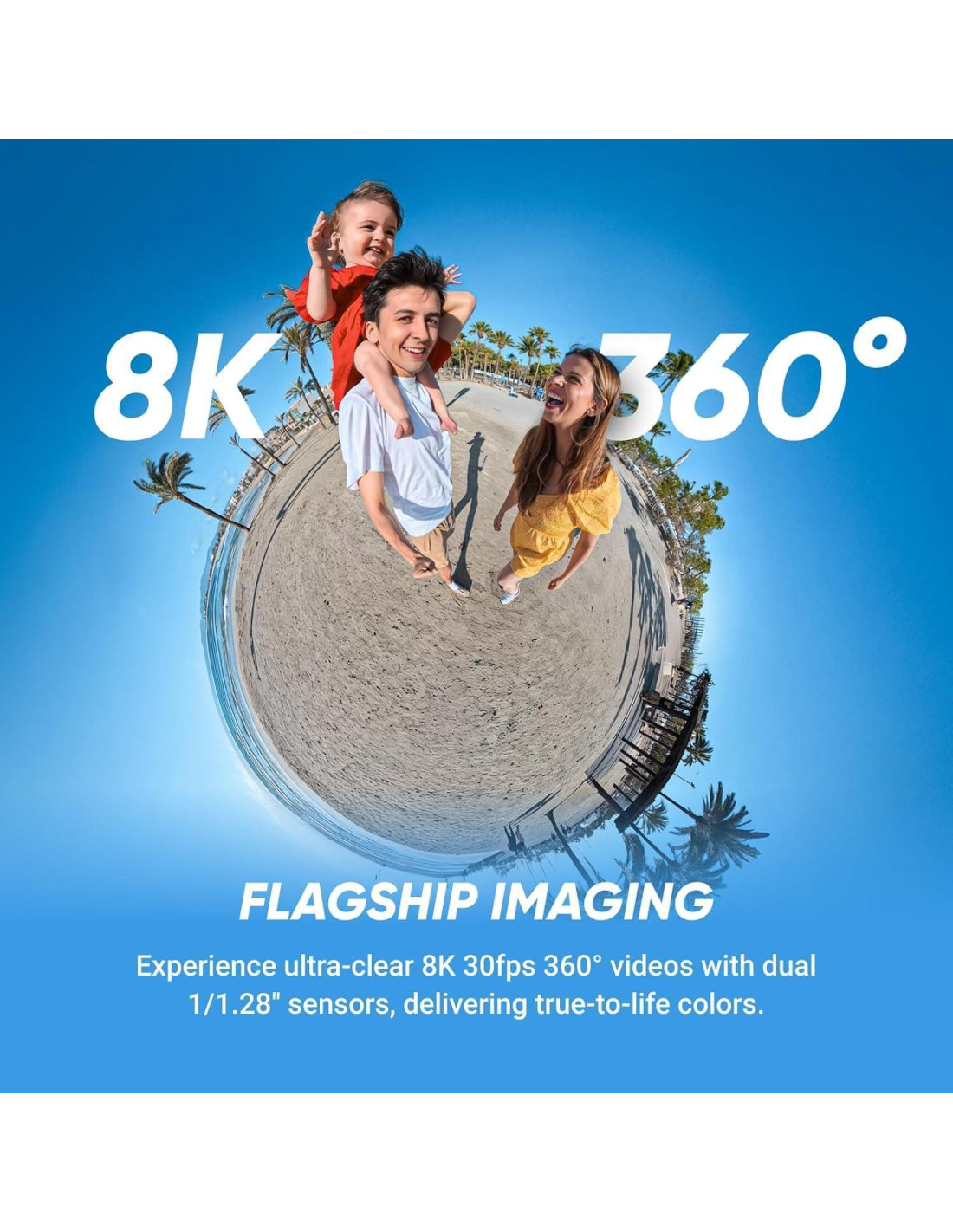- Captura 360 grados con 8K: con video 8K 360 y rendimiento mejorado en baja luz para grabaciones durante todo el día y desde todos los ángulos. Audio mejorado, duración de batería de 185 minutos, y lentes mejoradas reemplazables por el usuario con resistencia a rayones de nivel de vidrio de zafiro la convierten en la cámara 360 más duradera hasta ahora.