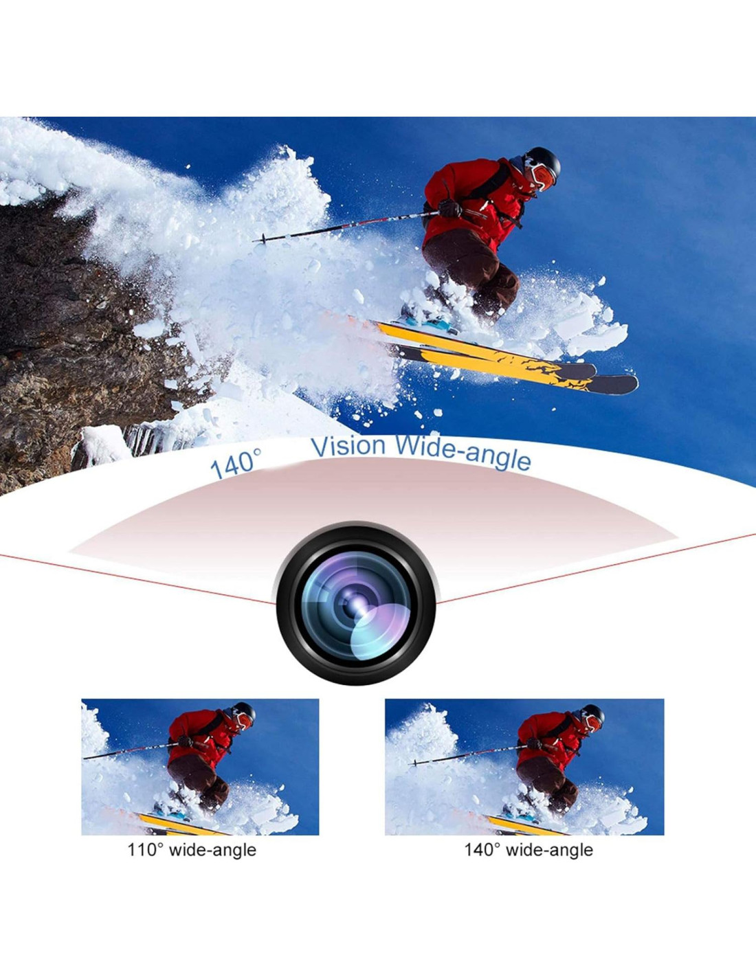 - Lente de ángulo amplio de 140, estuche especial, profundidad máxima de 30M.